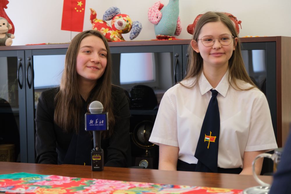 匈中雙語(yǔ)學(xué)校學(xué)生胡靈月(左)和宋智孝在匈牙利首都布達(dá)佩斯接受新華社記者采訪(2023年2月7日攝)。
