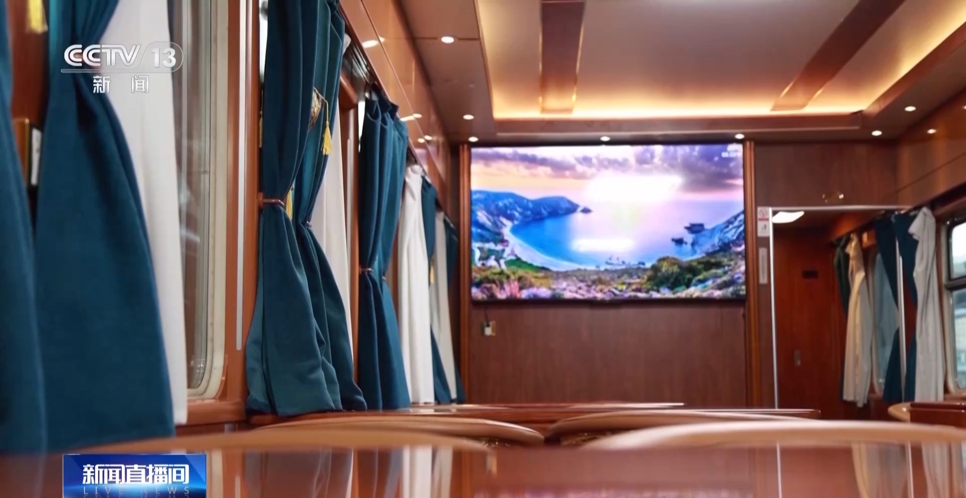 次趟旅游專列的車廂裝飾也獨(dú)具新疆民俗特色。