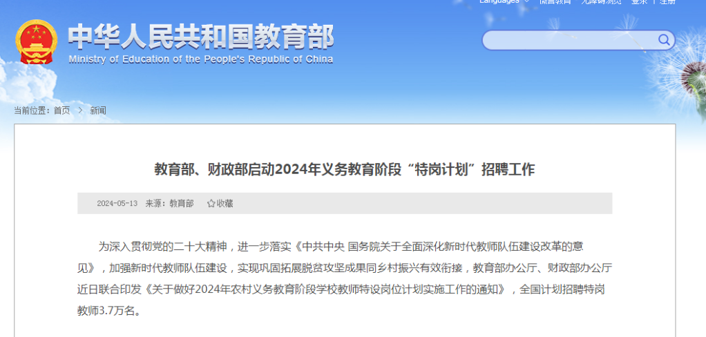教育部、財(cái)政部啟動(dòng)2024年義務(wù)教育階段“特崗計(jì)劃”招聘工作