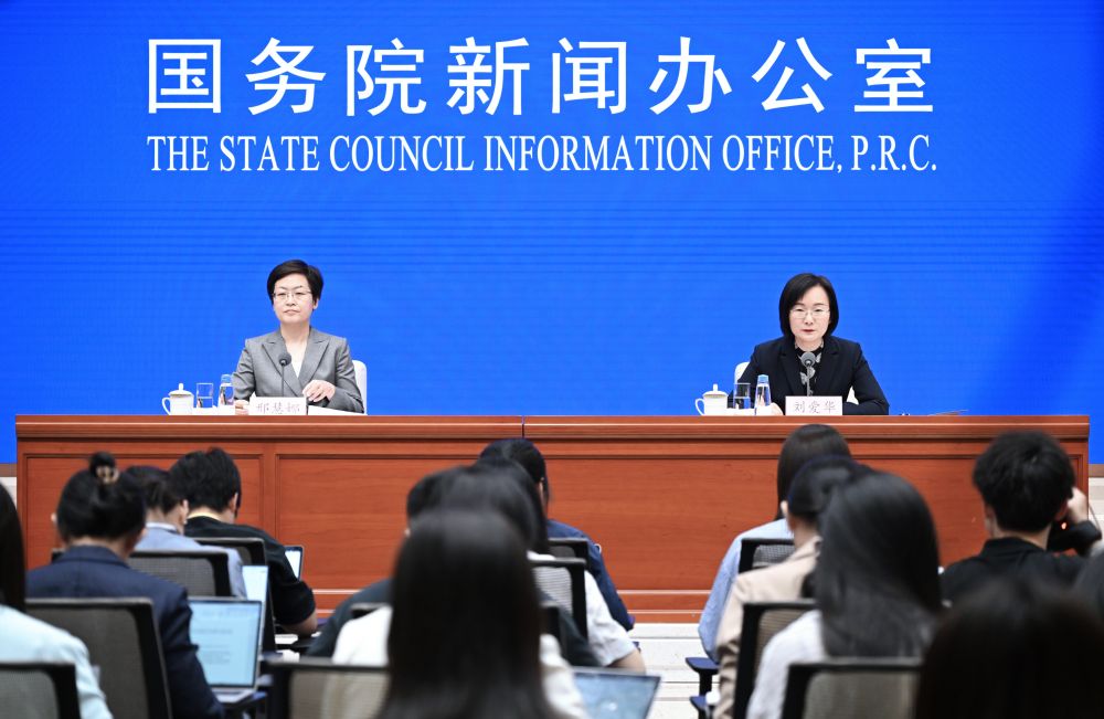 5月17日,國務院新聞辦公室舉行新聞發(fā)布會,請國家統(tǒng)計局新聞發(fā)言人、總經(jīng)濟師、國民經(jīng)濟綜合統(tǒng)計司司長劉愛華介紹2024年4月份國民經(jīng)濟運行情況,并答記者問。新華社記者 陳曄華攝