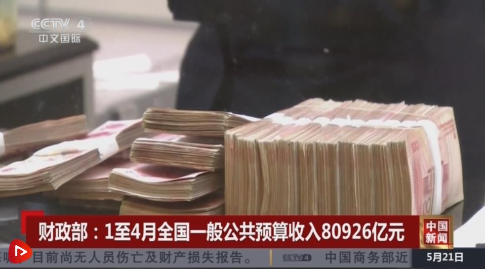 財政部:1—4月全國一般公共預算收入80926億元