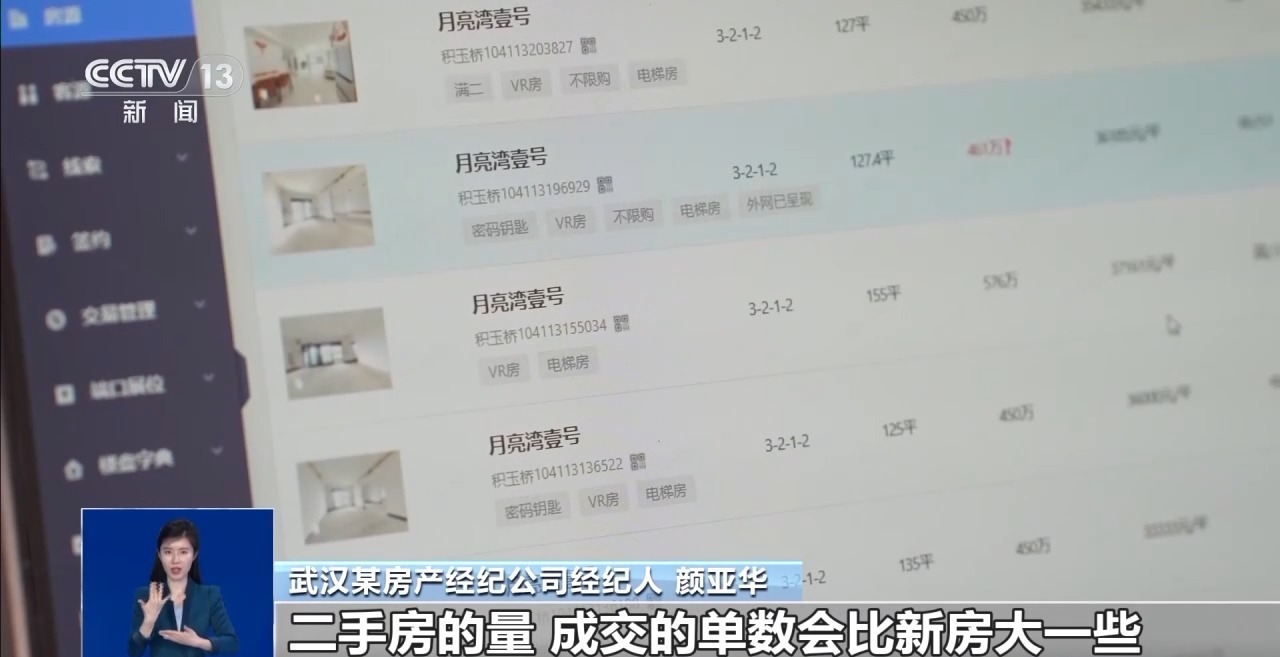 武漢某房產(chǎn)經(jīng)紀(jì)公司經(jīng)紀(jì)人 顏亞華:按成交量來(lái)說(shuō),二手房成交的單數(shù)會(huì)比新房大一些,因?yàn)槎址康膯蝺r(jià)可能會(huì)更低一點(diǎn)。