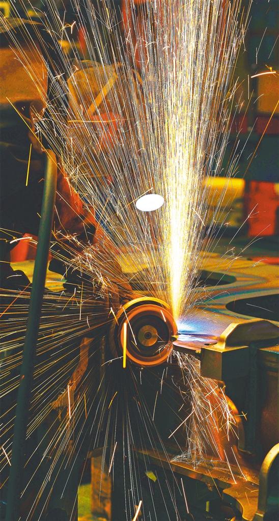 ▼5月28日,中車長(zhǎng)客轉(zhuǎn)向架事業(yè)部焊接產(chǎn)線組,員工在進(jìn)行動(dòng)車組構(gòu)架橫梁焊后修磨作業(yè)。