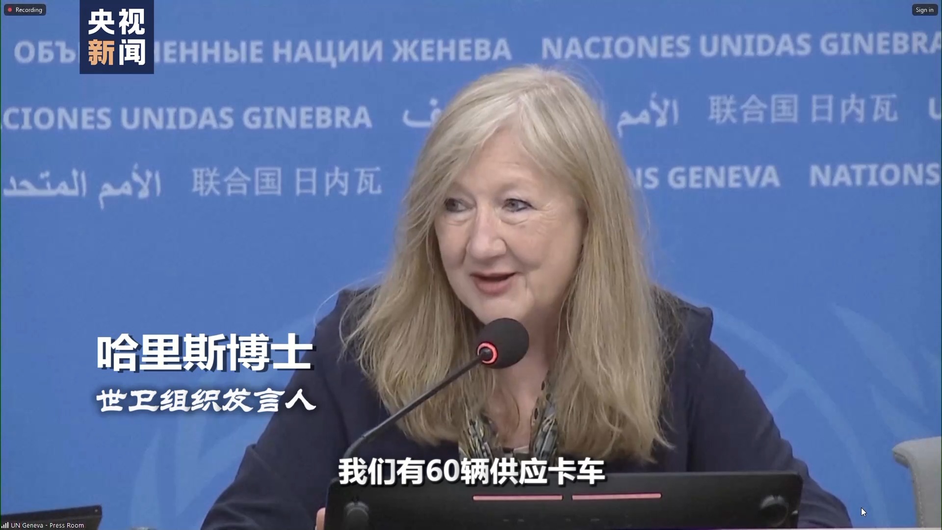 世衛(wèi)組織發(fā)言人 哈里斯博士:由于邊境關閉,我們有60輛供應卡車在阿里什等候,無法進入拉法。