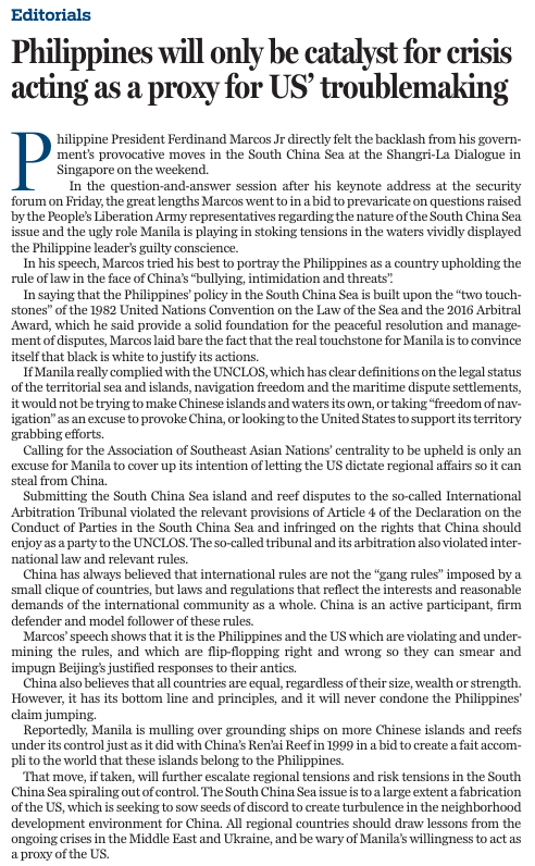 原文標(biāo)題:Philippines will only be catalyst for crisis acting as a proxy for US' troublemaking