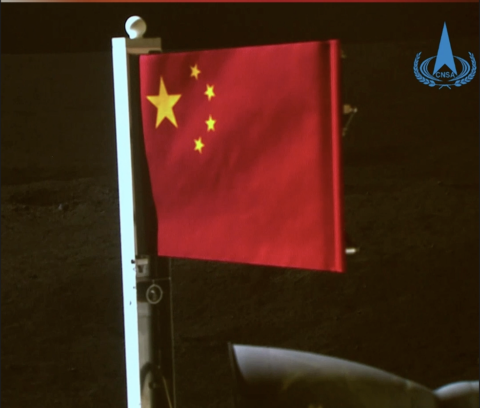 6月4日,五星紅旗在落在月背的嫦娥六號(hào)探測(cè)器上展開(kāi)。鮮艷的五星紅旗再次閃耀月球,這是中國(guó)首次在月球背面獨(dú)立動(dòng)態(tài)展示國(guó)旗。