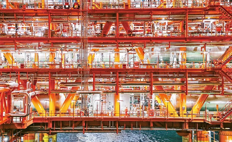 近年來,我國堅持創(chuàng)新引領(lǐng),加快發(fā)展新質(zhì)生產(chǎn)力,重大工程科技含量持續(xù)攀升。2023年11月14日,中國海油宣布我國渤海首個千億方大氣田——渤中19—6氣田Ⅰ期開發(fā)項目成功投產(chǎn),標志著我國海上深層復(fù)雜潛山油氣藏開發(fā)邁入新階段。圖為工作人員在渤中19—6氣田作業(yè)。 新華社發(fā) 杜鵬輝/攝