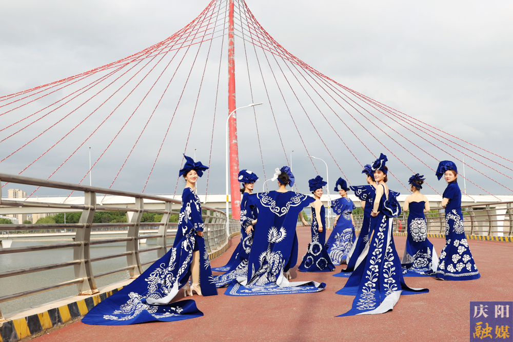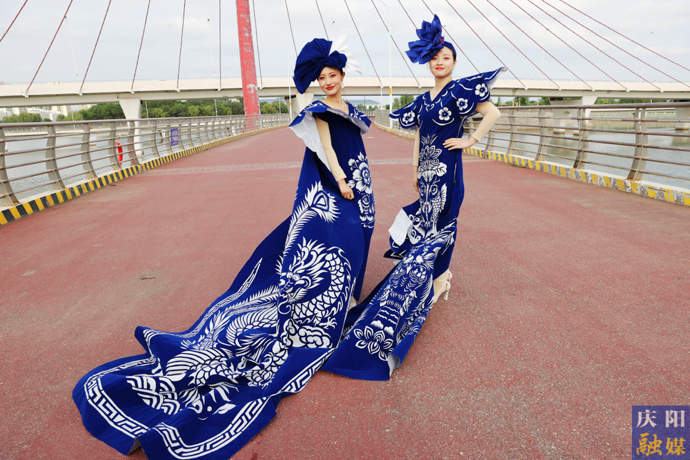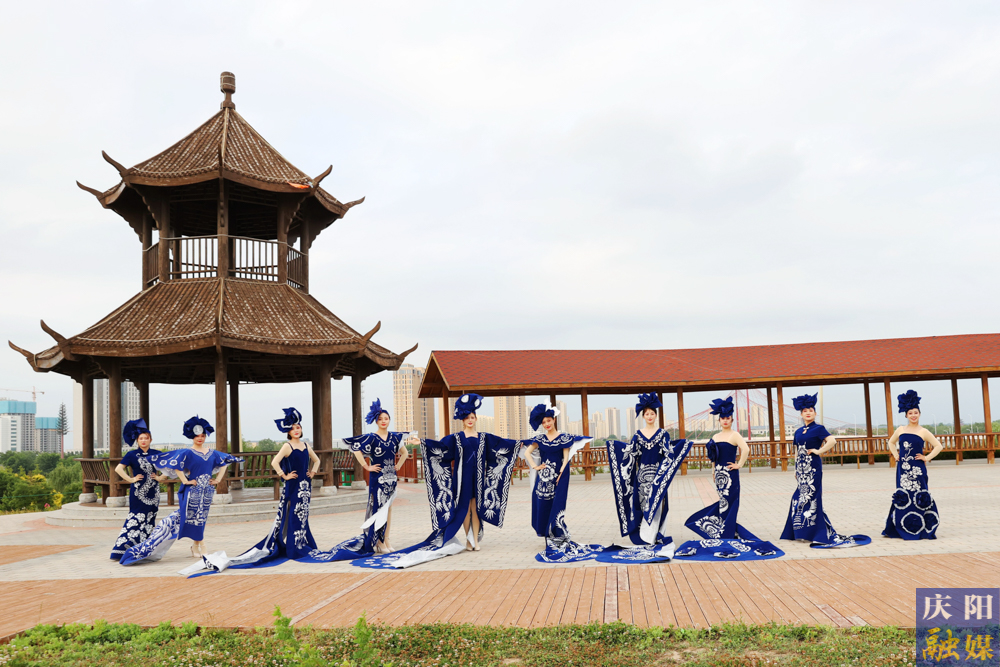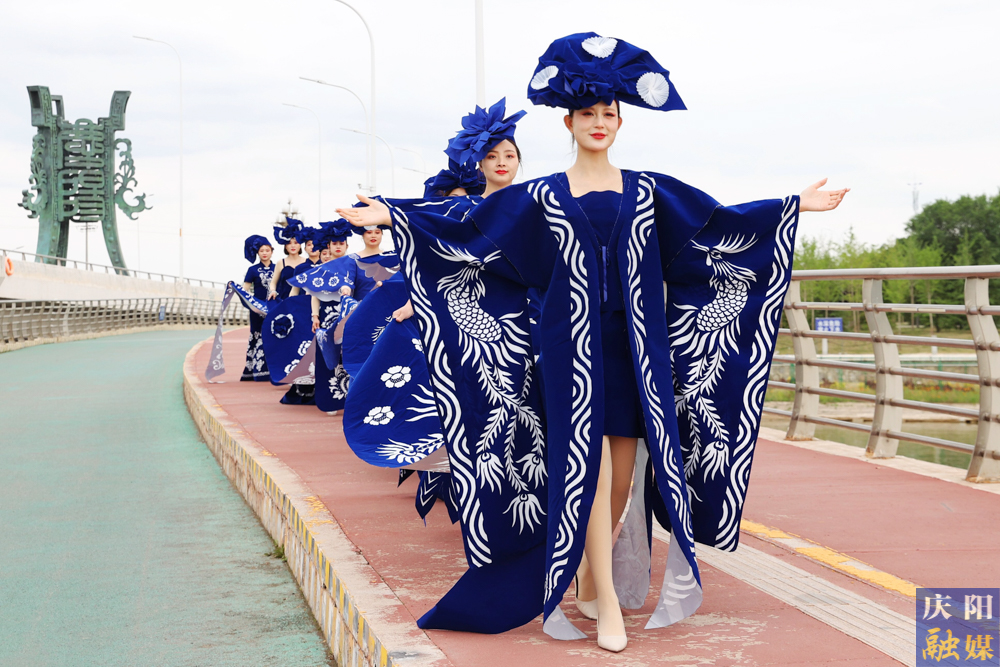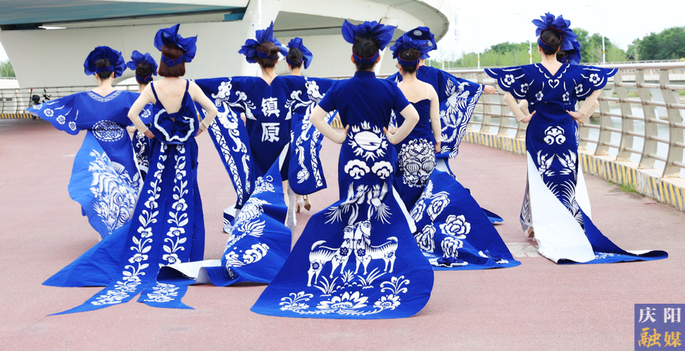 6月4日,慶陽融媒主播身著由鎮(zhèn)原縣文化館館長常燕創(chuàng)意設(shè)計的“剪云裳”慶陽剪紙系列服裝驚艷亮相。其中,“青花瓷”系列作品為全國全網(wǎng)首秀。