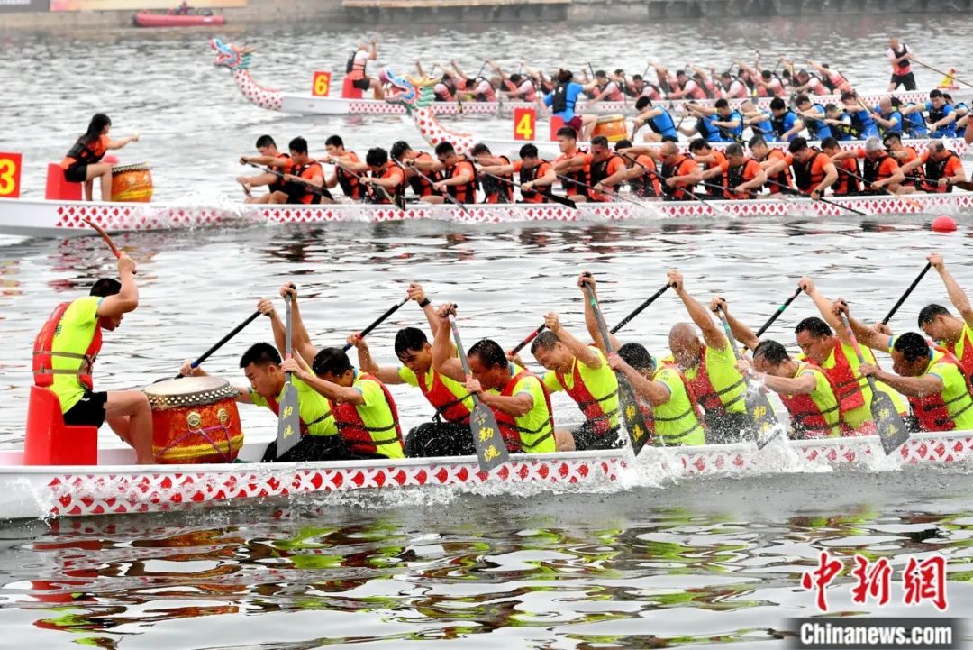 在廈門,端午節(jié)期間舉辦多場(chǎng)龍舟賽事。選手們你爭(zhēng)我?jiàn)Z,奮力劃槳,給市民帶來(lái)了一場(chǎng)場(chǎng)視覺(jué)盛宴。中新社記者 王東明 攝