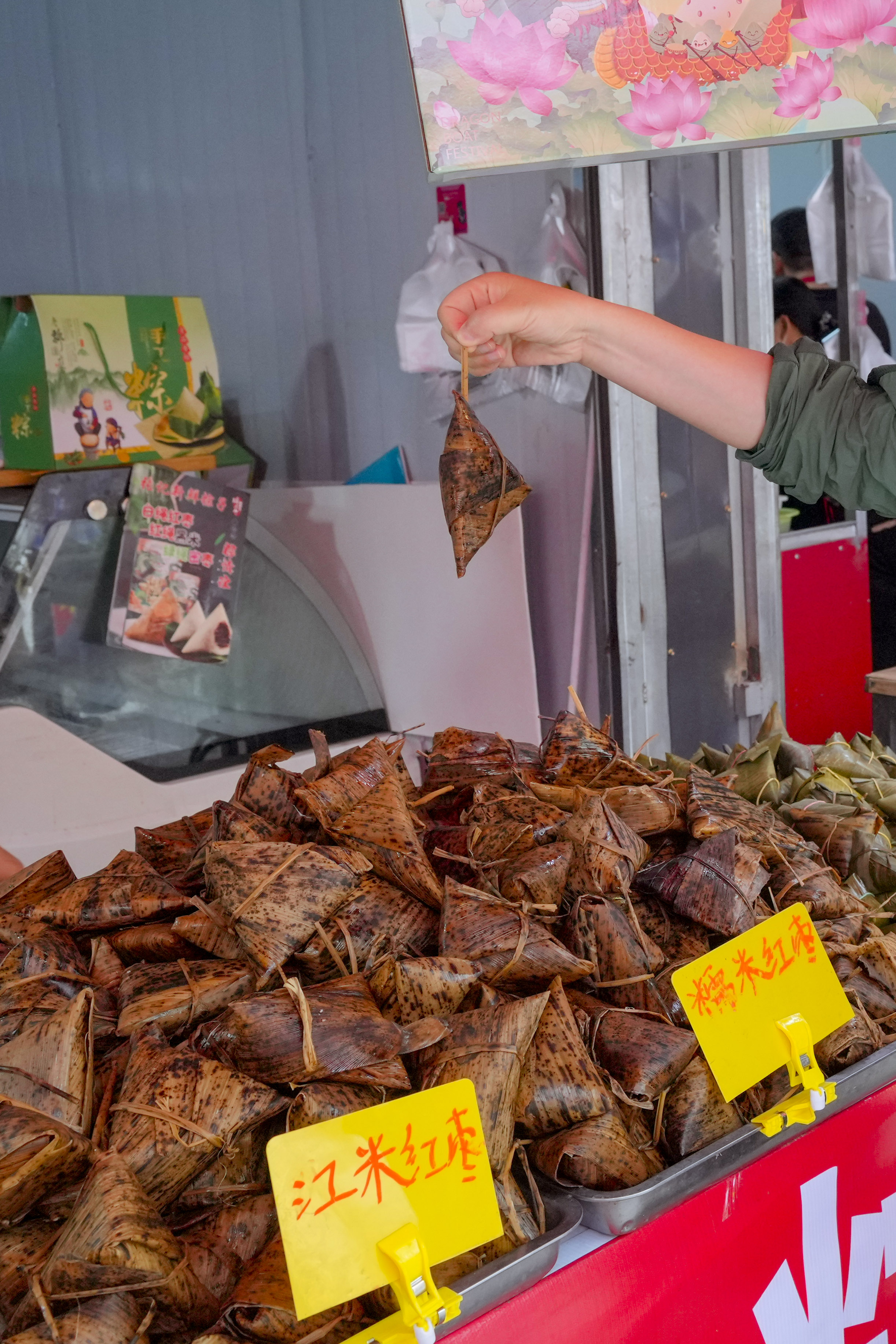 端午節(jié)前的周末,山西運城東湖早市熱鬧非凡。扎成把的艾草、刺繡香囊、五彩繩、各色粽子、時令水果……將節(jié)日氣氛烘托到了高潮。