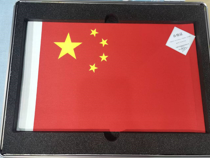 嫦娥六號月面國旗交付正樣件。(武漢紡織大學供圖)