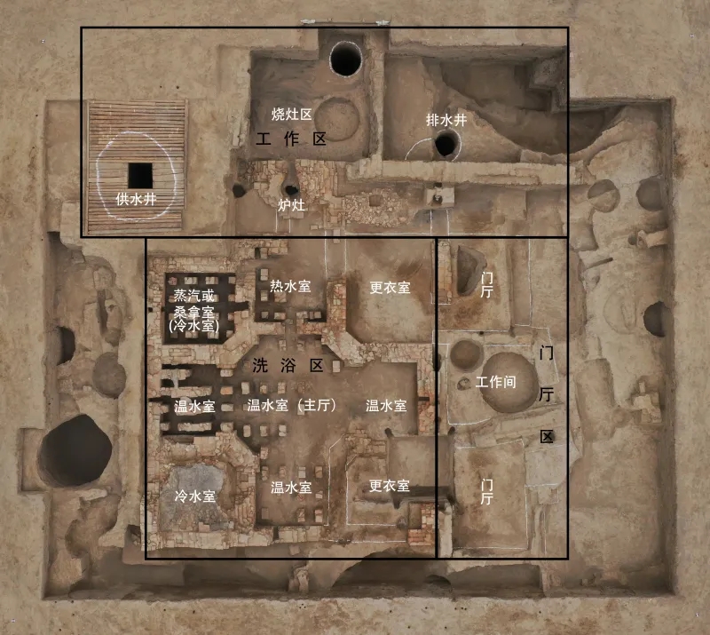 唐朝墩古城大型公共浴場平面圖。(圖片由中國人民大學提供)
