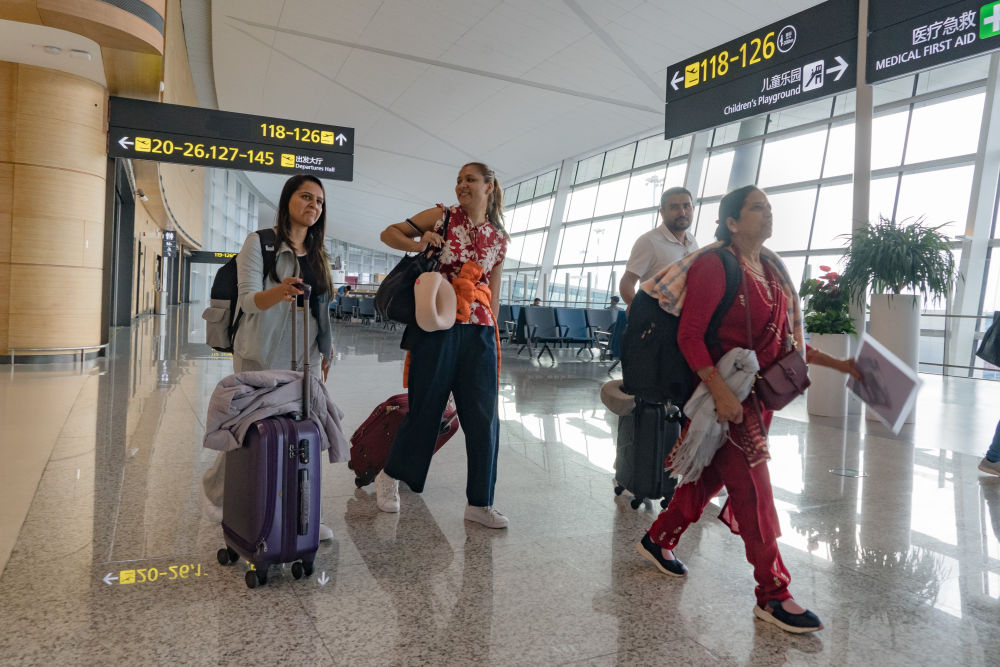 2024年6月13日,旅客行走在成都天府國際機(jī)場T1航站樓內(nèi)。新華社記者 唐文豪 攝