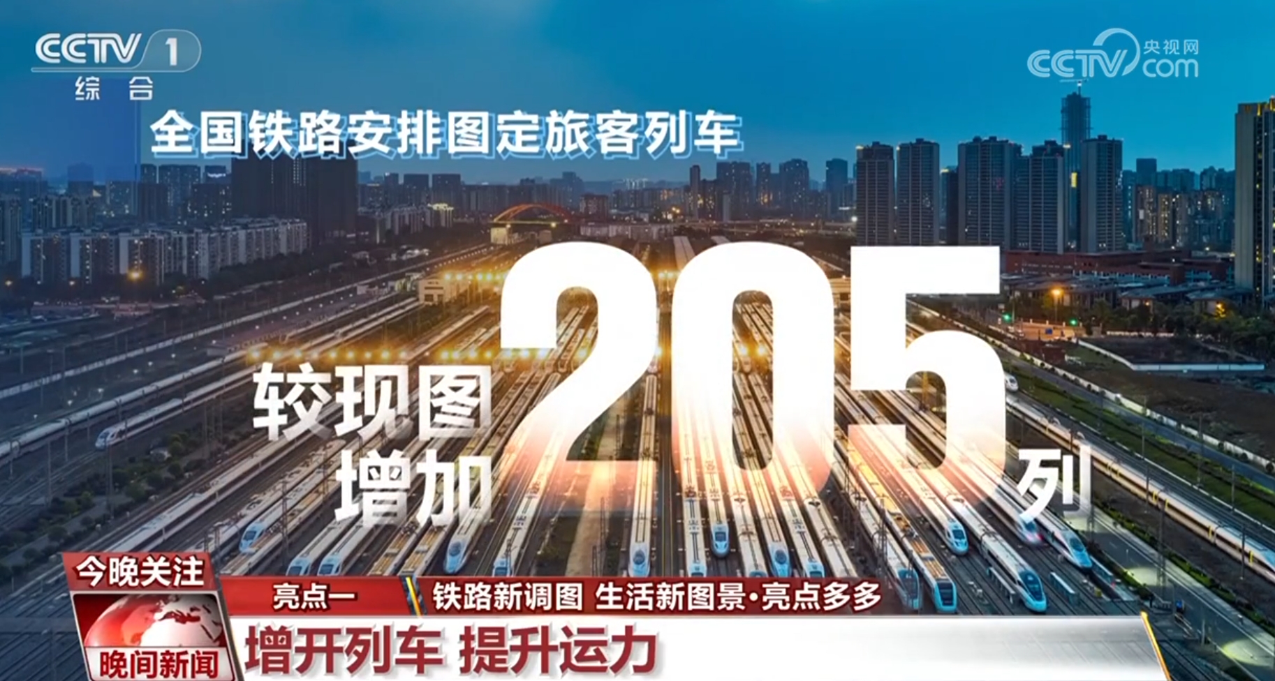 調圖后,全國鐵路安排圖定旅客列車12690列,較現(xiàn)圖增加205列;開行貨物列車22595列,較現(xiàn)圖增加74列,鐵路客貨運輸效率進一步提升。