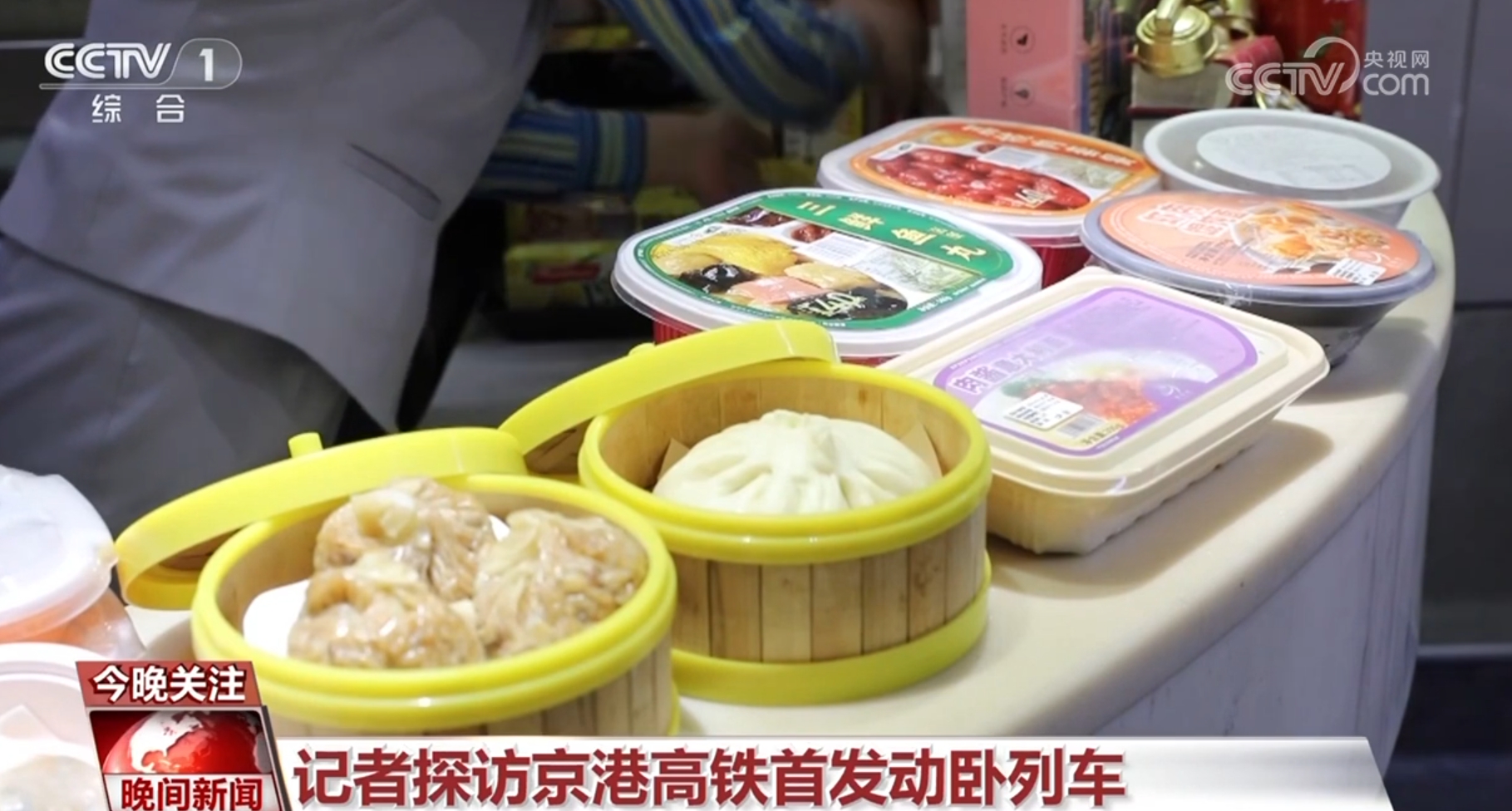 記者來到餐車看到,這里的空間十分寬闊,大家可以在這里享受美食,有荔枝肉套餐、三鮮魚丸套餐、腸粉等具有港式風味的餐食供選擇,還有奶茶供應,喜歡喝奶茶的旅客可以在列車上享受舌尖上的美食之旅。