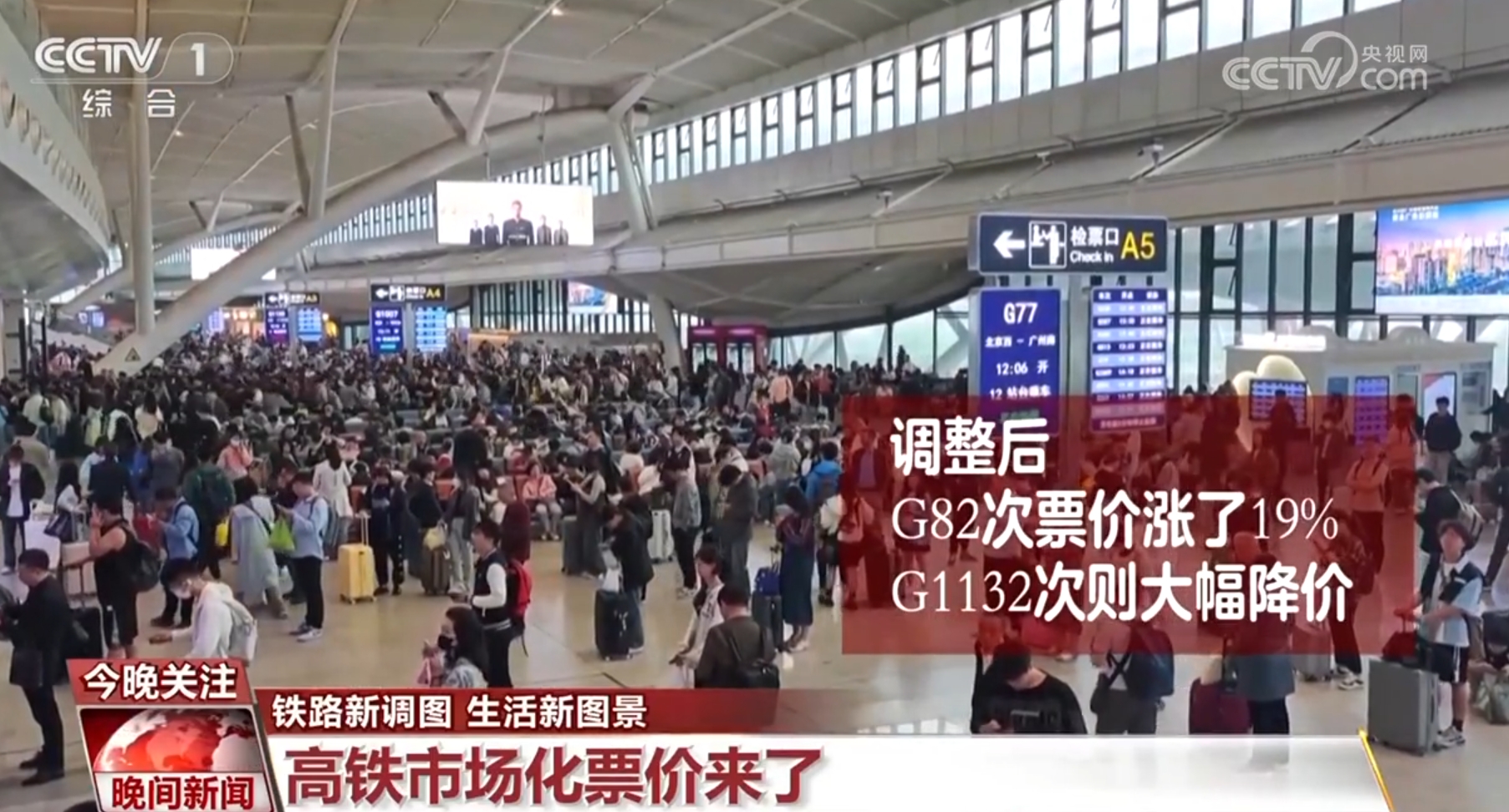 列車執(zhí)行票價以鐵路12306和相關車站公告的公布票價為上限,綜合考慮區(qū)域、淡旺季、時段等因素,實行不同幅度的折扣,最低5.5折。以廣州南至武漢的G82次和G1132次為例,后者比前者運行時間長一小時,但目前兩者票價相同。而6月15日調整后,G82次票價漲了19%,而G1132次則大幅降價。