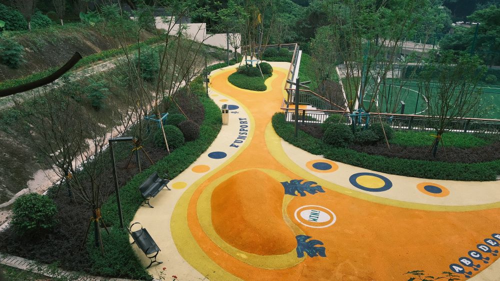 “公園位于紅巖村社區(qū)內(nèi),社區(qū)居民步行到公園不超過5分鐘?!被垬蚪值兰t巖村社區(qū)工作人員羅鑫說。