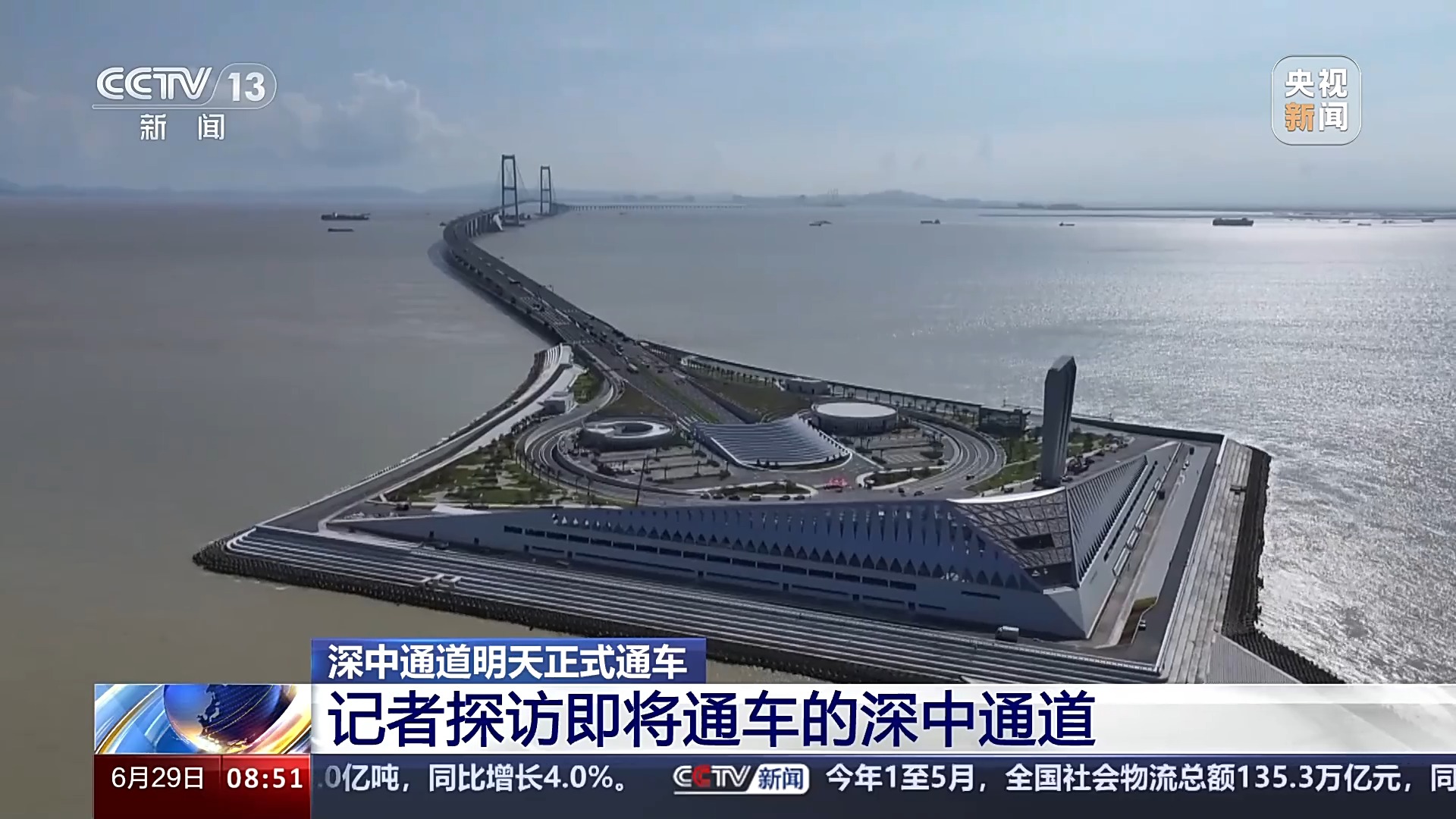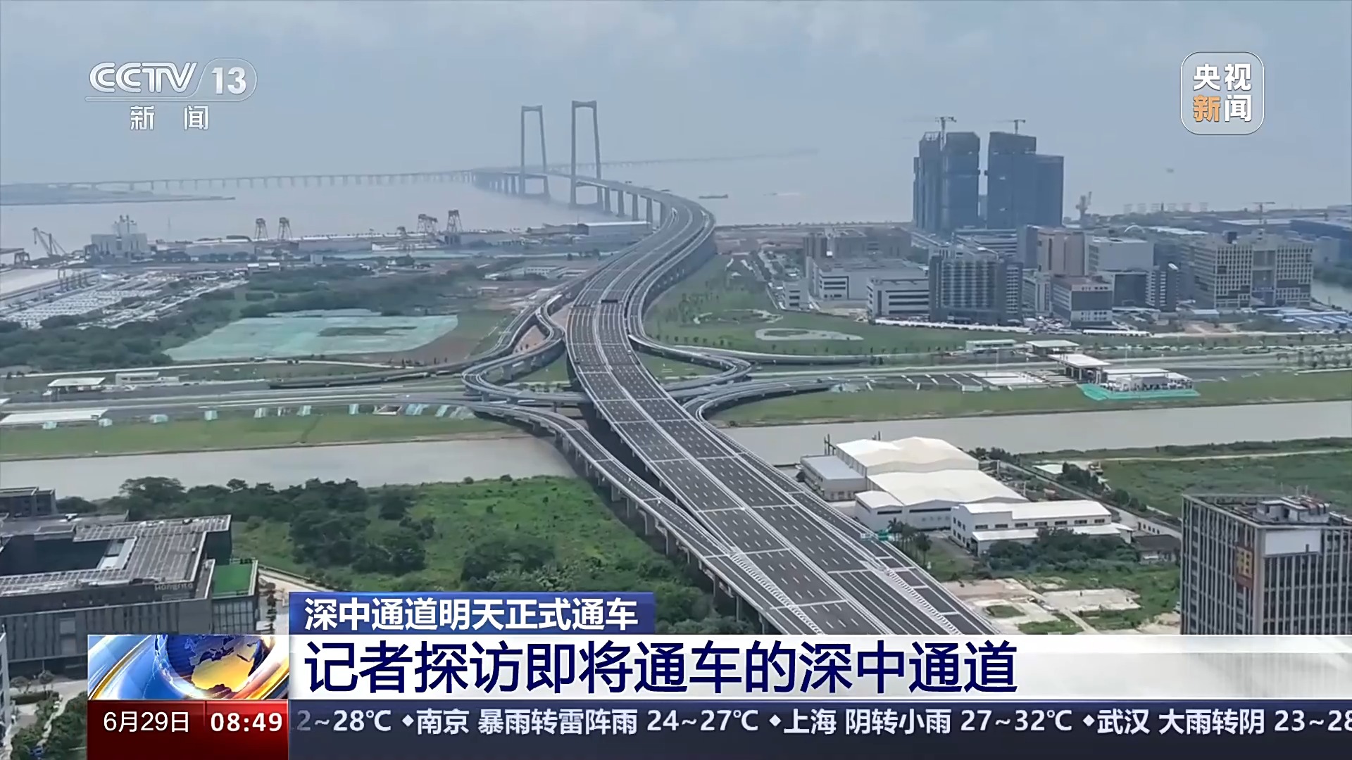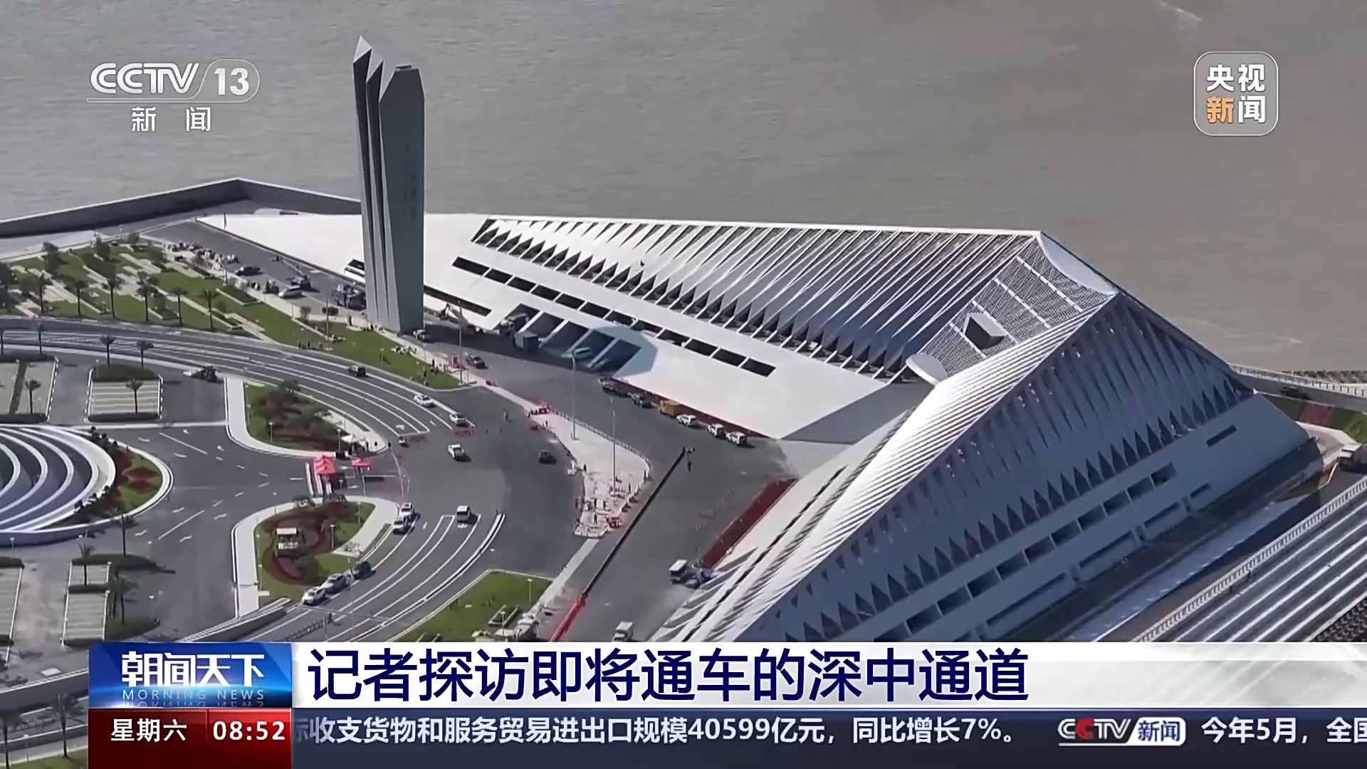 總臺記者 王思元:深中通道全長24公里,我們行駛了大概18分鐘,就已經(jīng)通過海底隧道進(jìn)入了深圳。這里是重要的互聯(lián)互通的交通樞紐,我身后就是廣深沿江高速,通過我的另一側(cè),大家可以看到,從這里行駛5公里左右,就可以到達(dá)機(jī)荷高速和廣深高速了,從這個位置到達(dá)深圳寶安國際機(jī)場有2公里的距離。