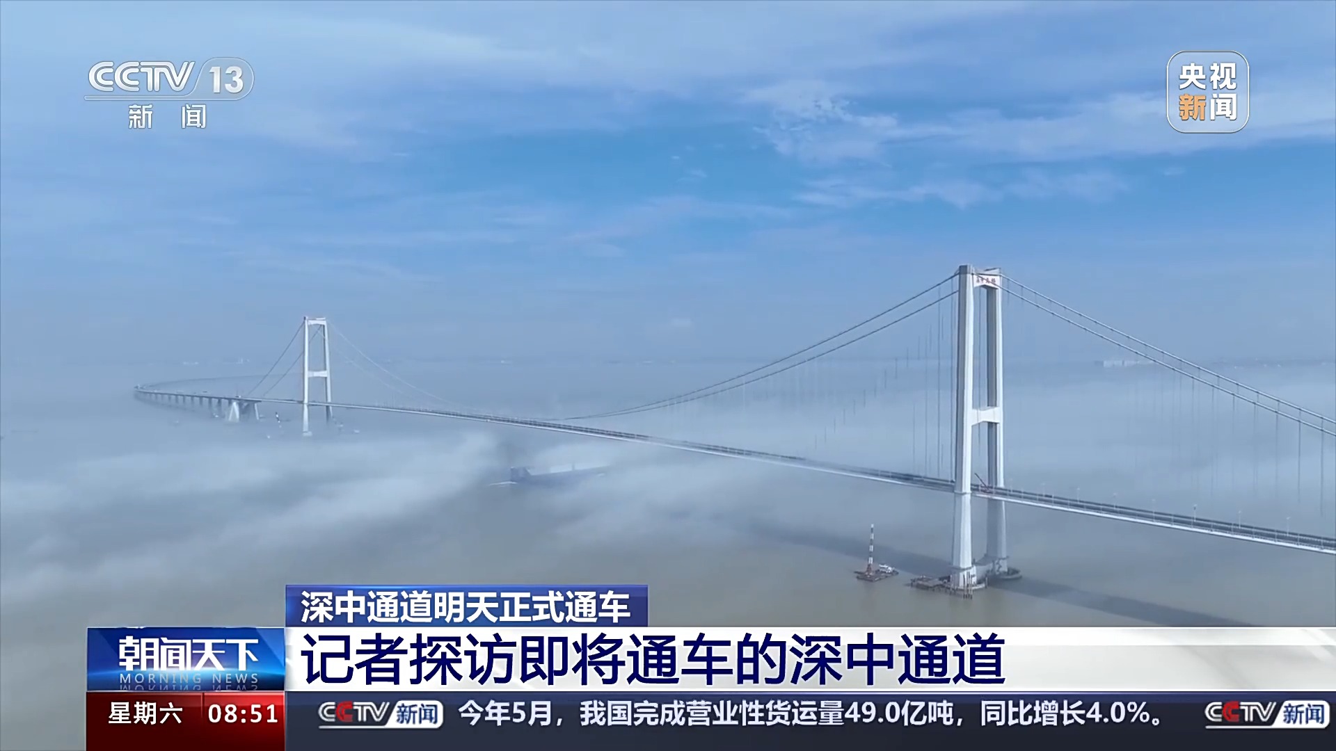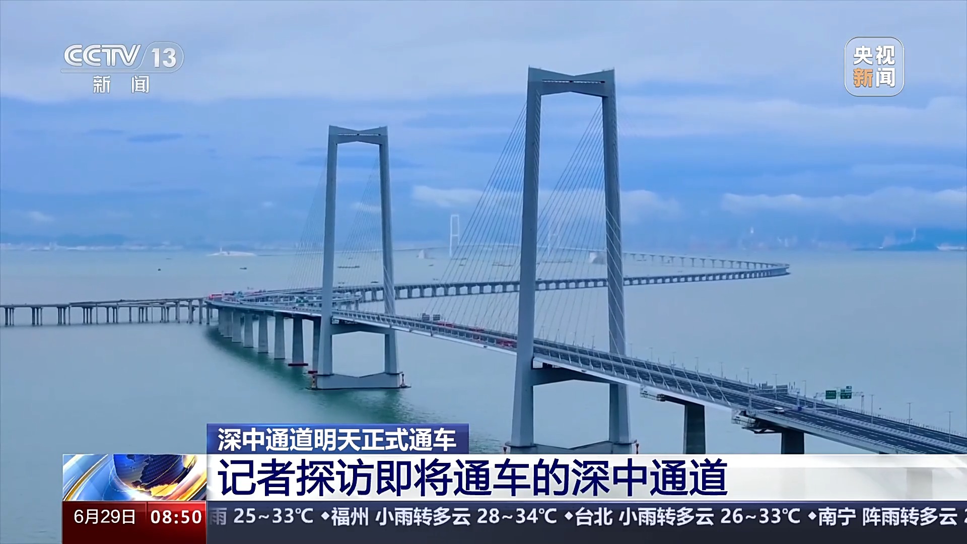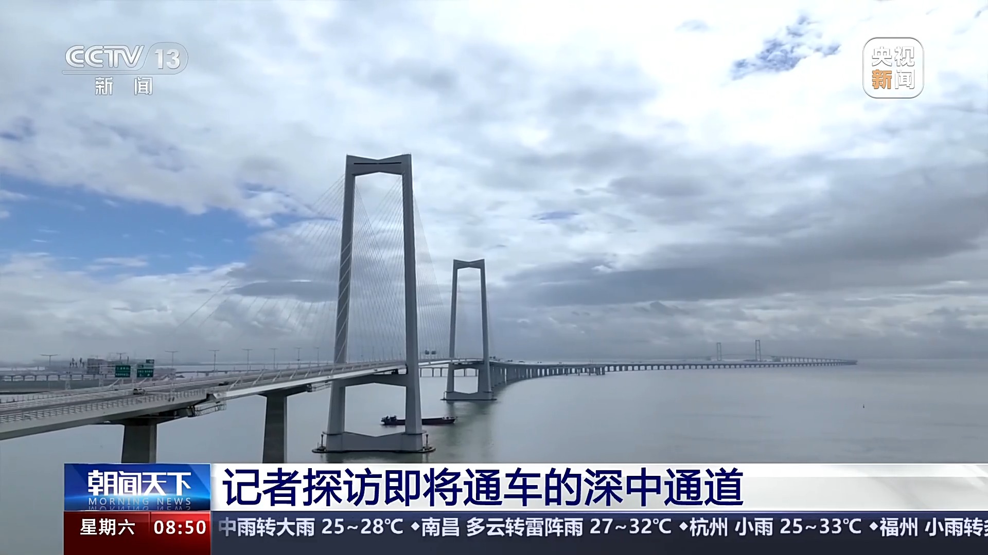 總臺記者 王思元:深中通道全長24公里,我們行駛了大概18分鐘,就已經(jīng)通過海底隧道進(jìn)入了深圳。這里是重要的互聯(lián)互通的交通樞紐,我身后就是廣深沿江高速,通過我的另一側(cè),大家可以看到,從這里行駛5公里左右,就可以到達(dá)機(jī)荷高速和廣深高速了,從這個位置到達(dá)深圳寶安國際機(jī)場有2公里的距離。