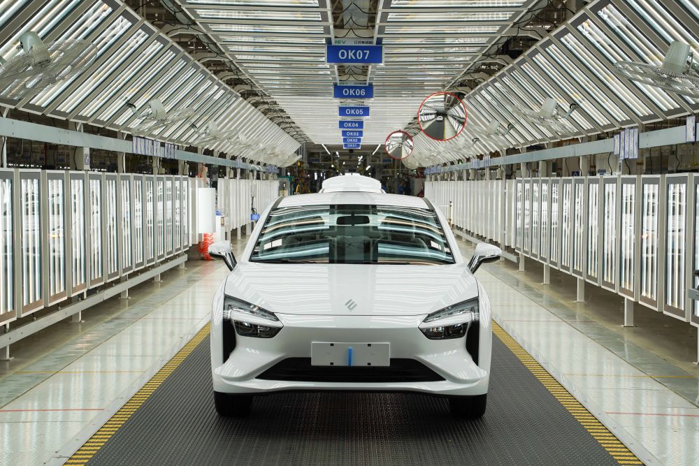 在位于江西省南昌市經(jīng)開區(qū)的江鈴集團新能源汽車有限公司生產(chǎn)基地拍攝的汽車生產(chǎn)流水線(2023年7月18日攝)。新華社記者 周密 攝