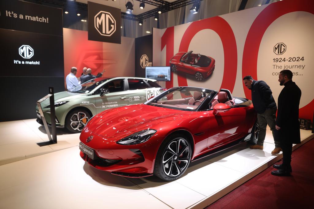 1月17日,人們?cè)诒壤麜r(shí)布魯塞爾舉辦的2024布魯塞爾汽車展上參觀上汽名爵電動(dòng)汽車。新華社記者趙丁喆攝
