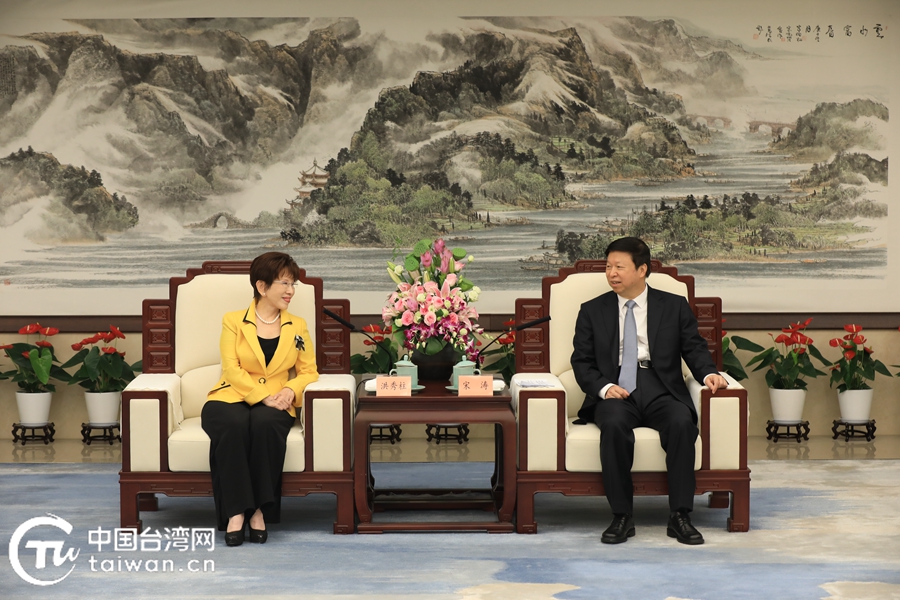 中國(guó)臺(tái)灣網(wǎng)杭州7月8日訊 中共中央臺(tái)辦、國(guó)務(wù)院臺(tái)辦主任宋濤8日在杭州會(huì)見(jiàn)出席第七屆海峽兩岸青年發(fā)展論壇的中國(guó)國(guó)民黨前主席、中華青雁和平教育基金會(huì)董事長(zhǎng)洪秀柱一行。