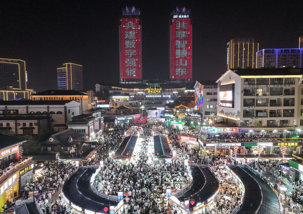 7月14日,游客在南京夫子廟景區(qū)游覽(無人機照片)。新華社發(fā)(楊素平攝)