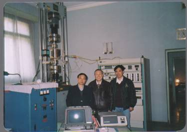 20世紀(jì)80年代在華東石油學(xué)院試驗室與研究生進(jìn)行海洋鋼結(jié)構(gòu)疲勞試驗(中為方華燦)。新華社發(fā)