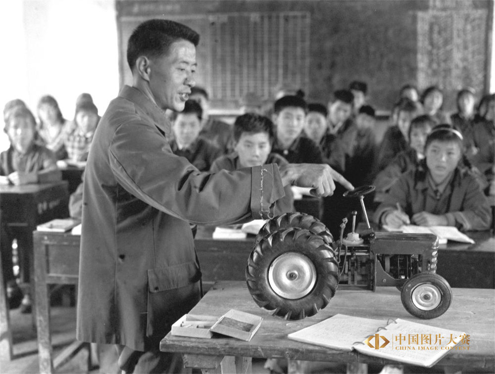 1980年12月4日,湖北省蒲圻縣泉口農(nóng)業(yè)中學教師給農(nóng)機班學生講拖拉機結構原理。李一方 攝/新華社中國照片檔案館