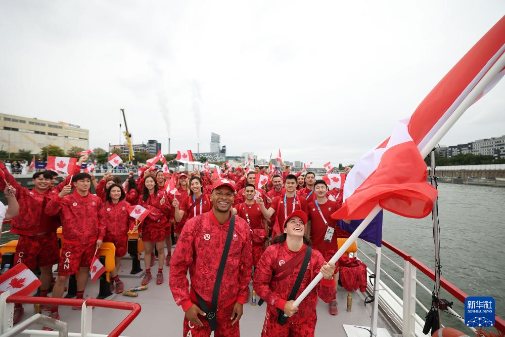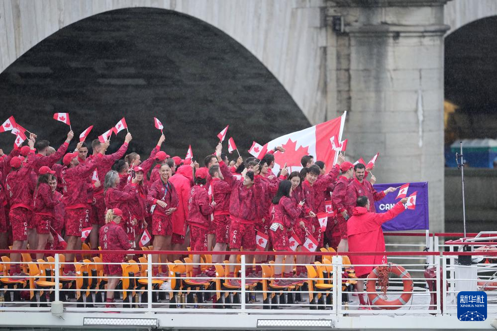 7月26日,加拿大體育代表團(tuán)成員在開幕式前。新華社記者 曹燦 攝