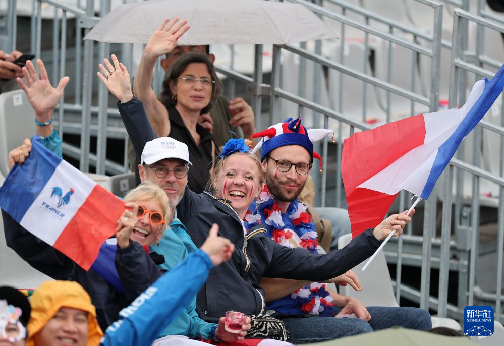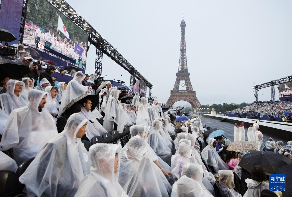 7月26日,觀眾在雨中觀看開幕式。新華社發(fā)(POOL照片/克洛達(dá)赫·基爾科因)