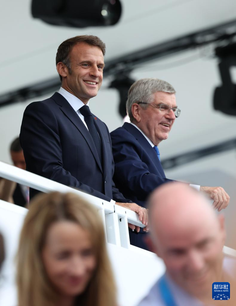 7月26日,法國(guó)總統(tǒng)馬克龍出席開幕式。新華社記者 高靜 攝