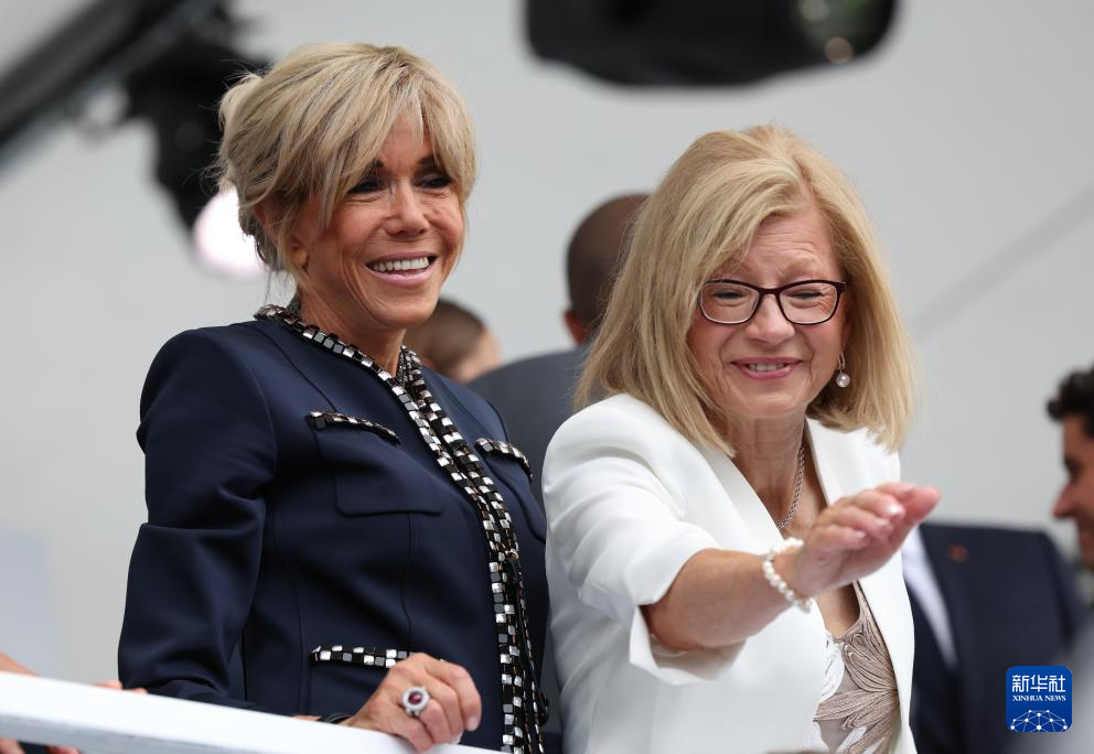 7月26日,法國(guó)總統(tǒng)馬克龍夫人布麗吉特(左)在開幕式現(xiàn)場(chǎng)。新華社記者 高靜 攝pagebreak