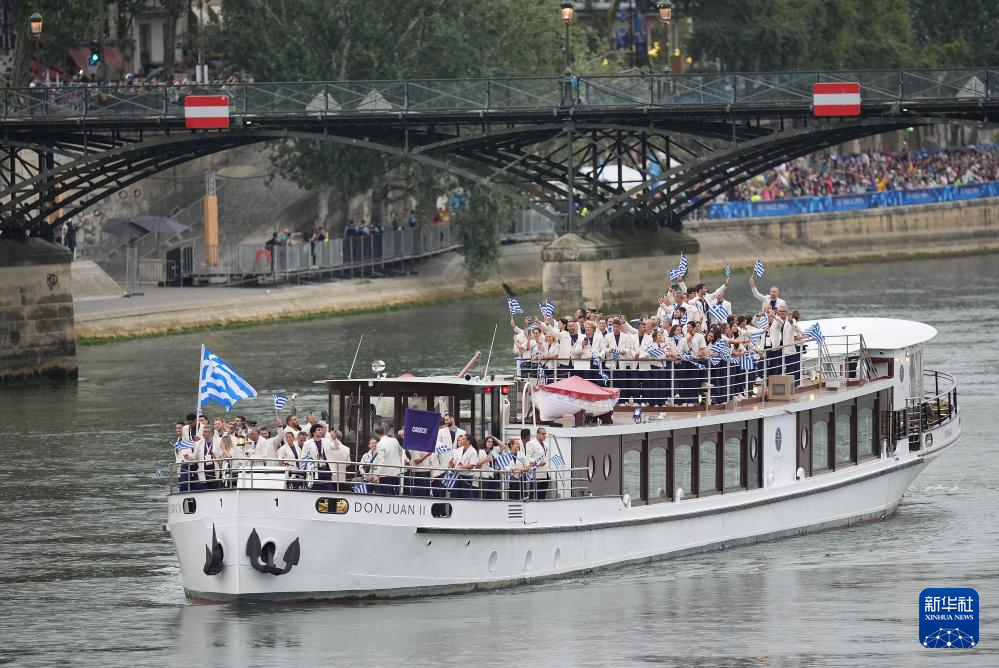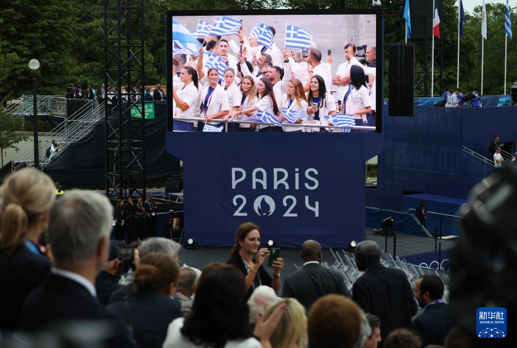 7月26日,希臘體育代表團(tuán)在開幕式上。新華社記者 張玉薇 攝