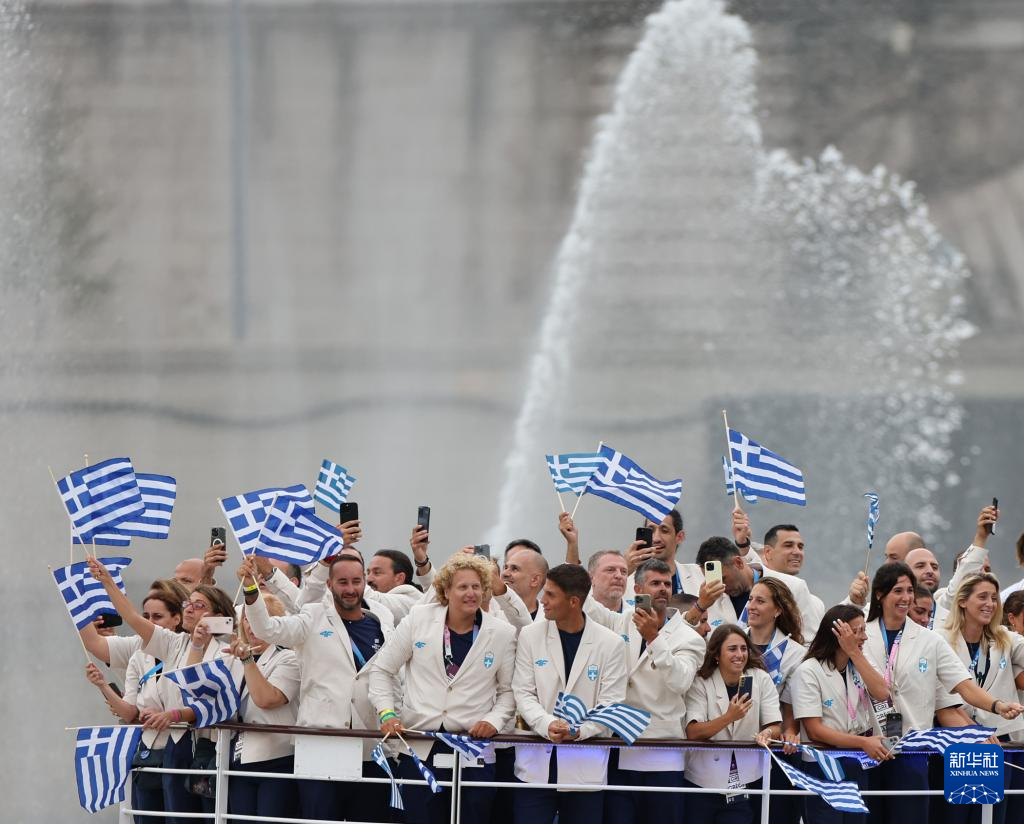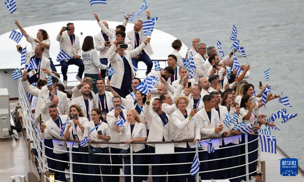 7月26日,希臘體育代表團(tuán)在開幕式上。新華社記者 郭昱 攝