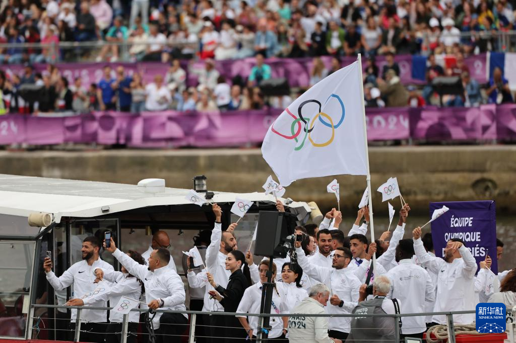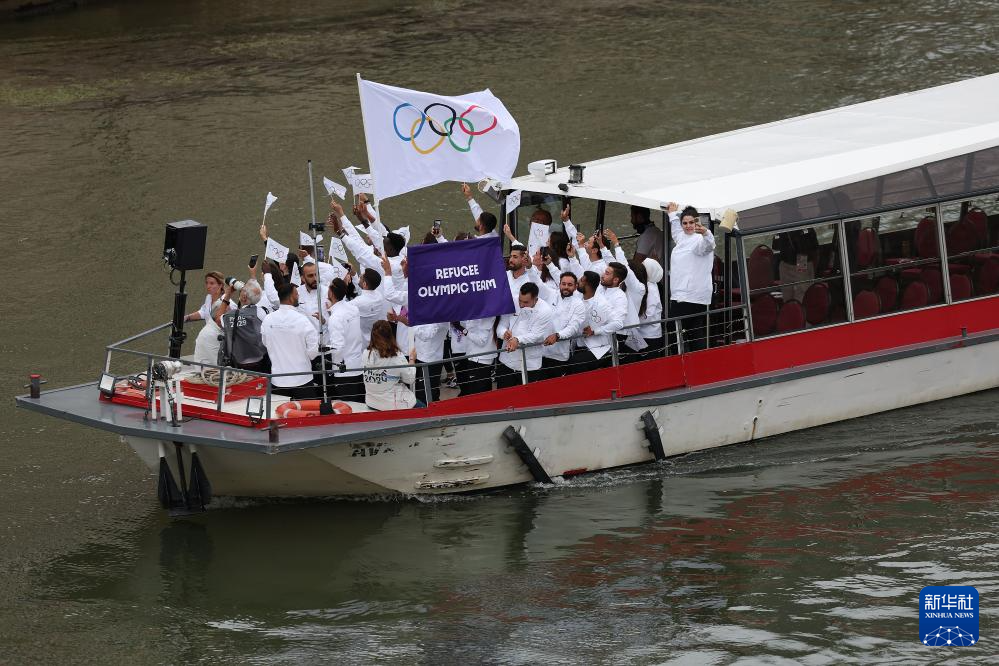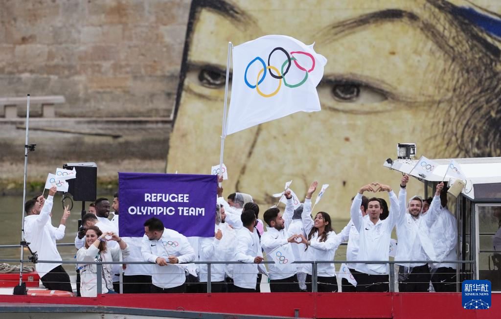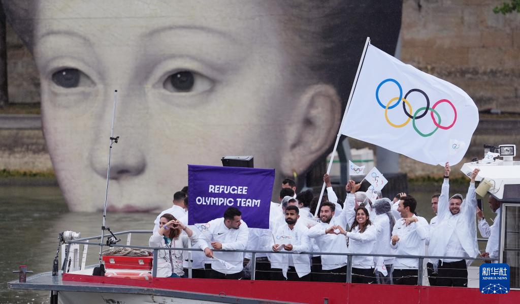7月26日,難民體育代表團(tuán)在開幕式上。新華社記者 呂小煒 攝