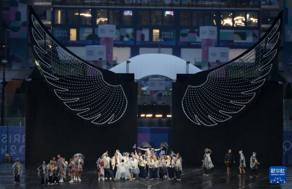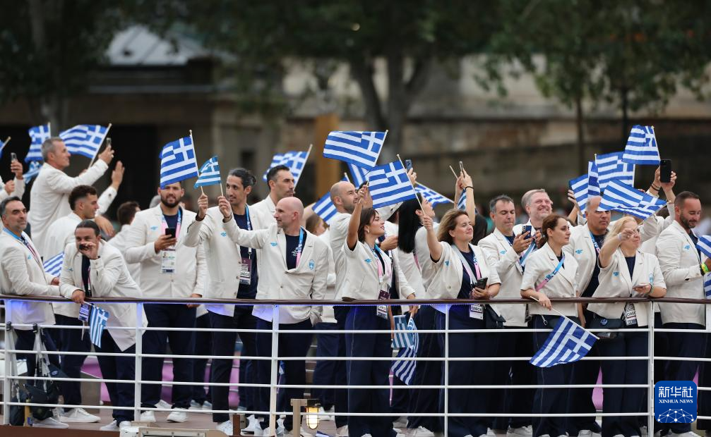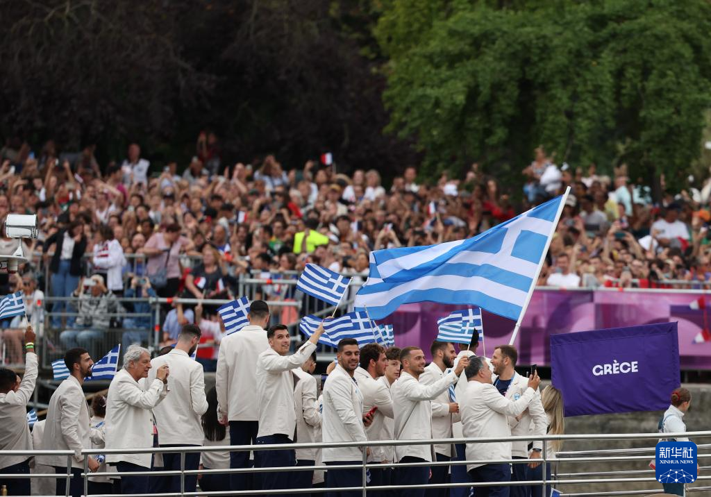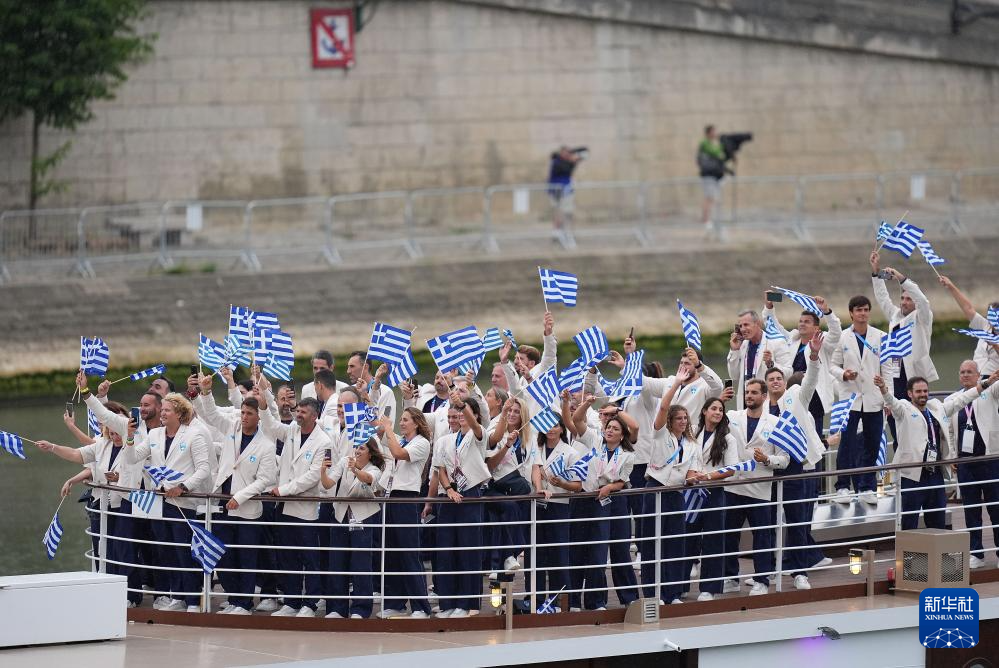 7月26日,希臘體育代表團(tuán)在開幕式上。新華社記者 萬(wàn)象 攝