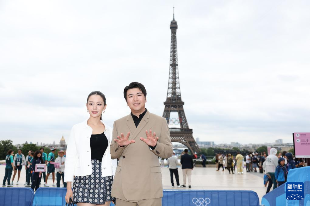 7月26日,鋼琴家郎朗(右)在開幕式開始前合影。新華社記者 李穎 攝