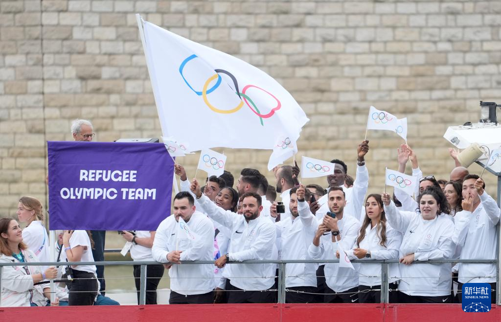 7月26日,難民體育代表團(tuán)在開幕式上。新華社記者 任正來(lái) 攝
