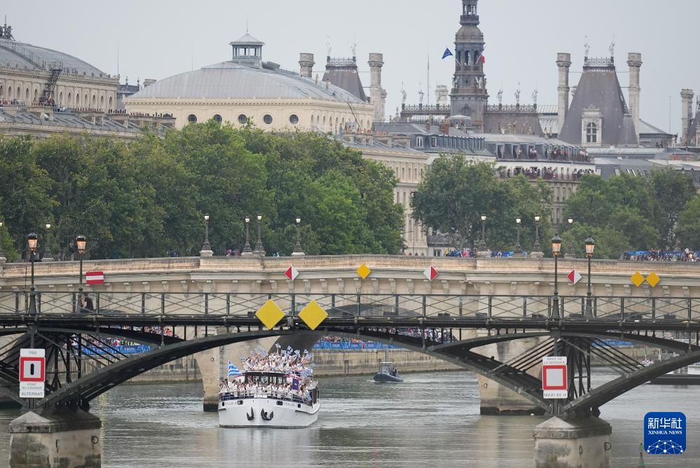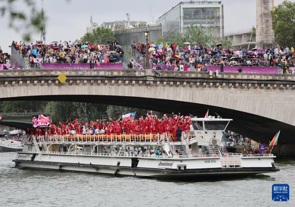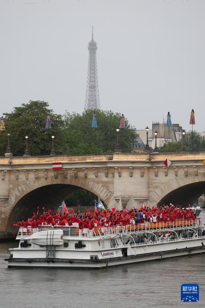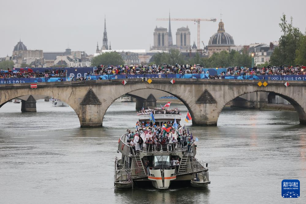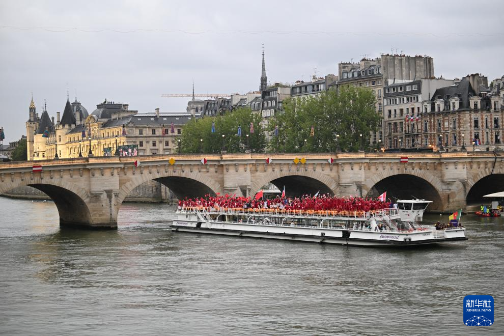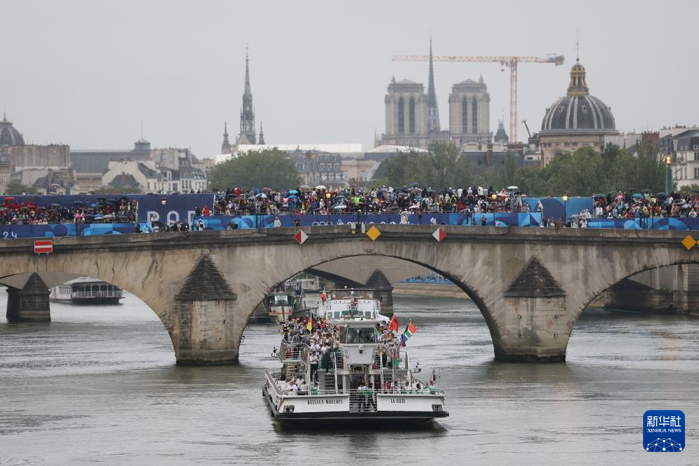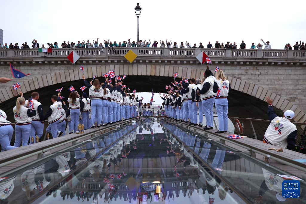 7月26日,各代表團(tuán)成員在開幕式上抵達(dá)耶拿橋。新華社發(fā)(POOL照片/盧多維克·馬林)