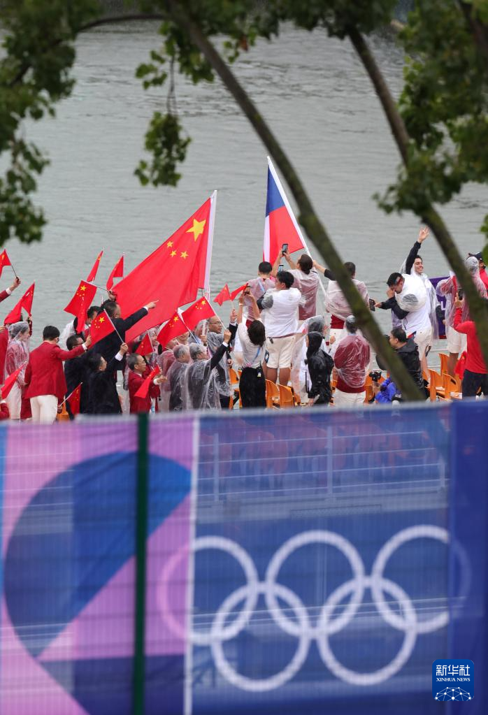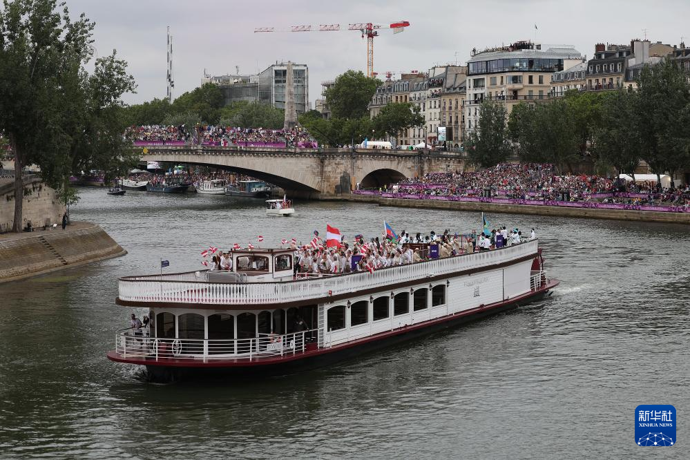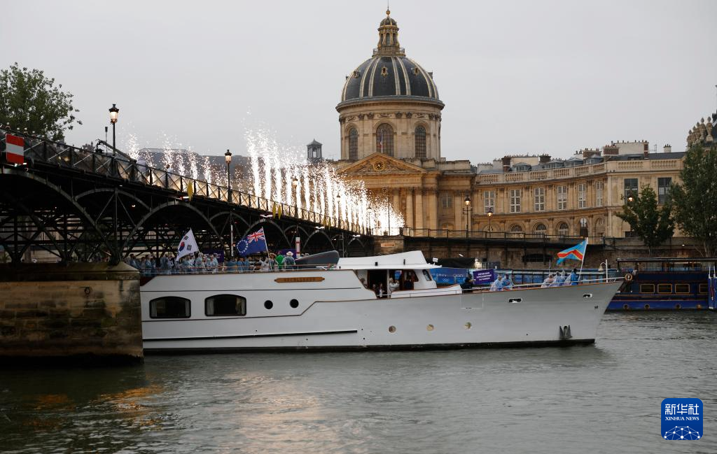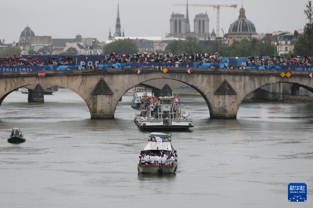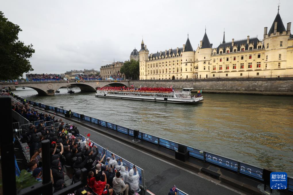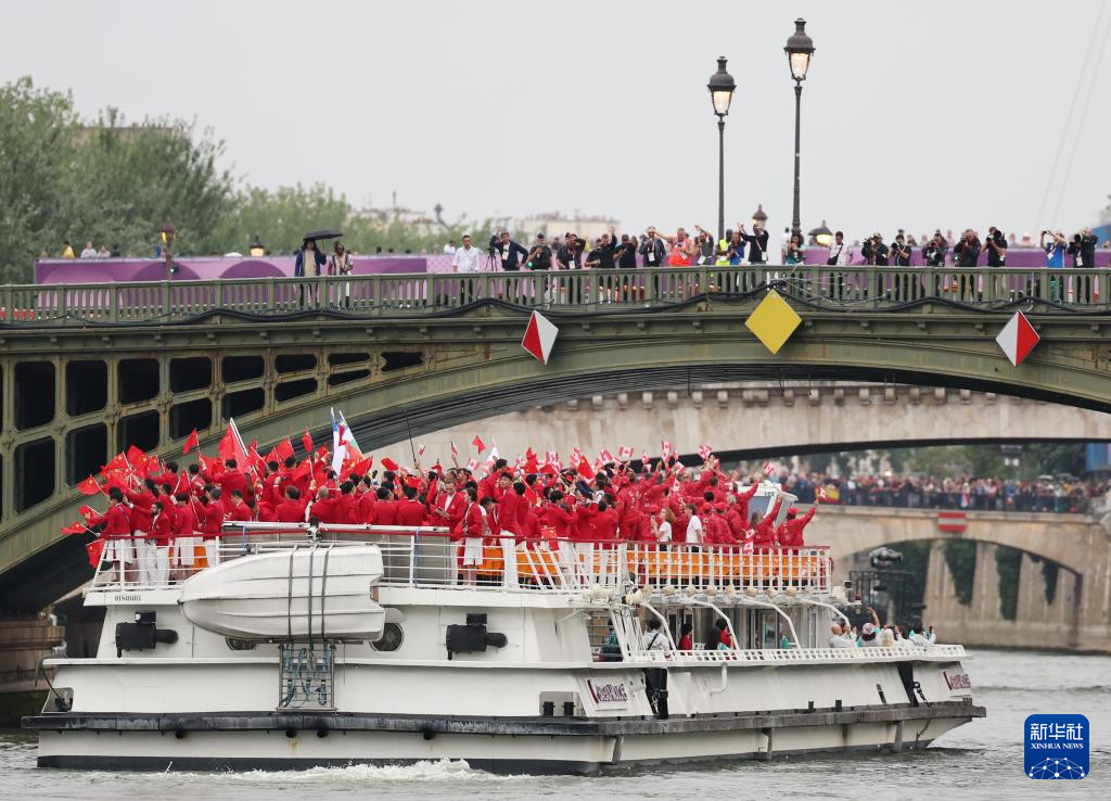 7月26日,各代表團(tuán)成員在開幕式上抵達(dá)耶拿橋。新華社發(fā)(POOL照片/盧多維克·馬林)