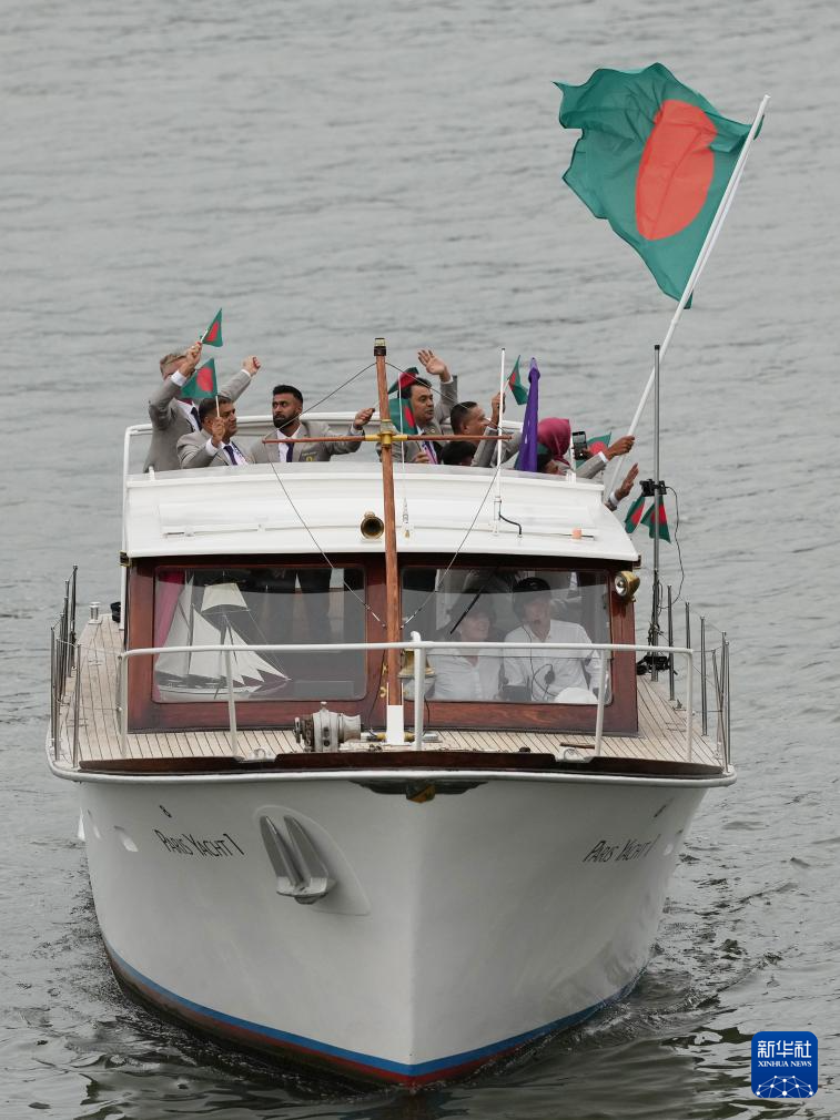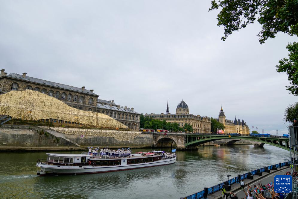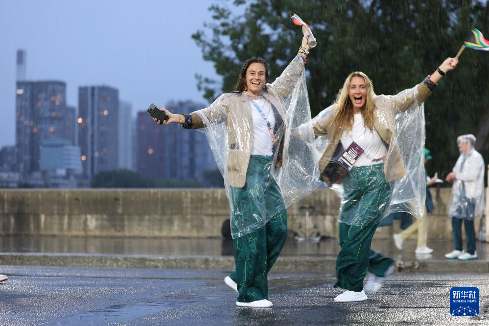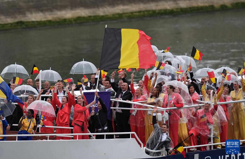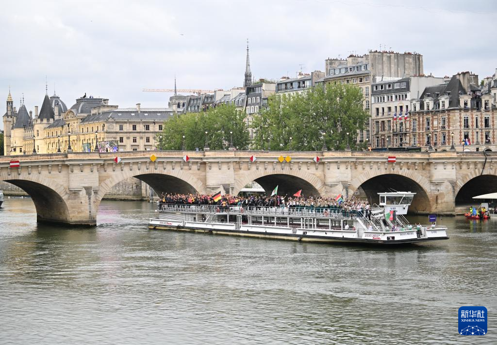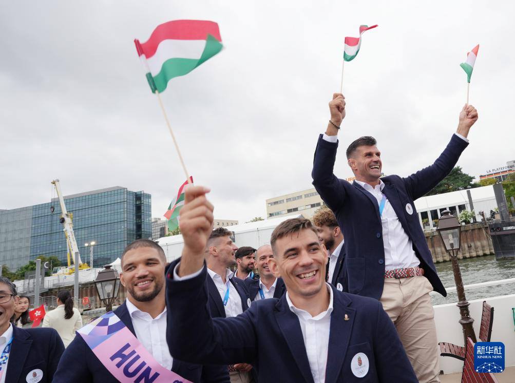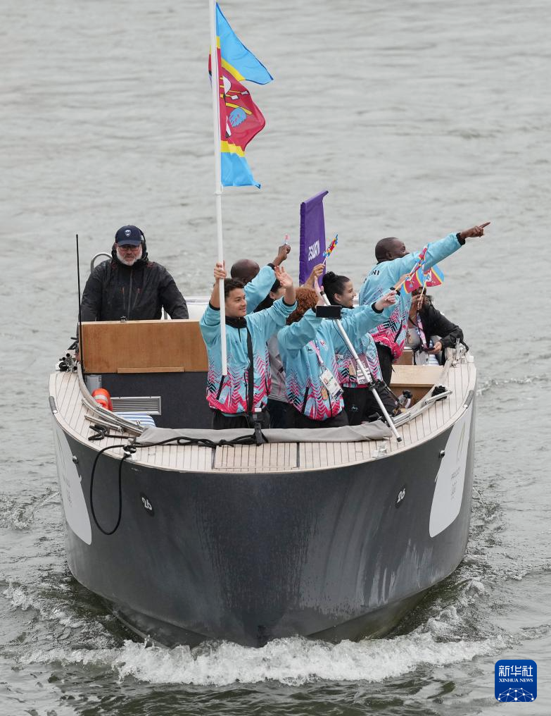 7月26日,各代表團(tuán)成員在開幕式上抵達(dá)耶拿橋。新華社發(fā)(POOL照片/盧多維克·馬林)