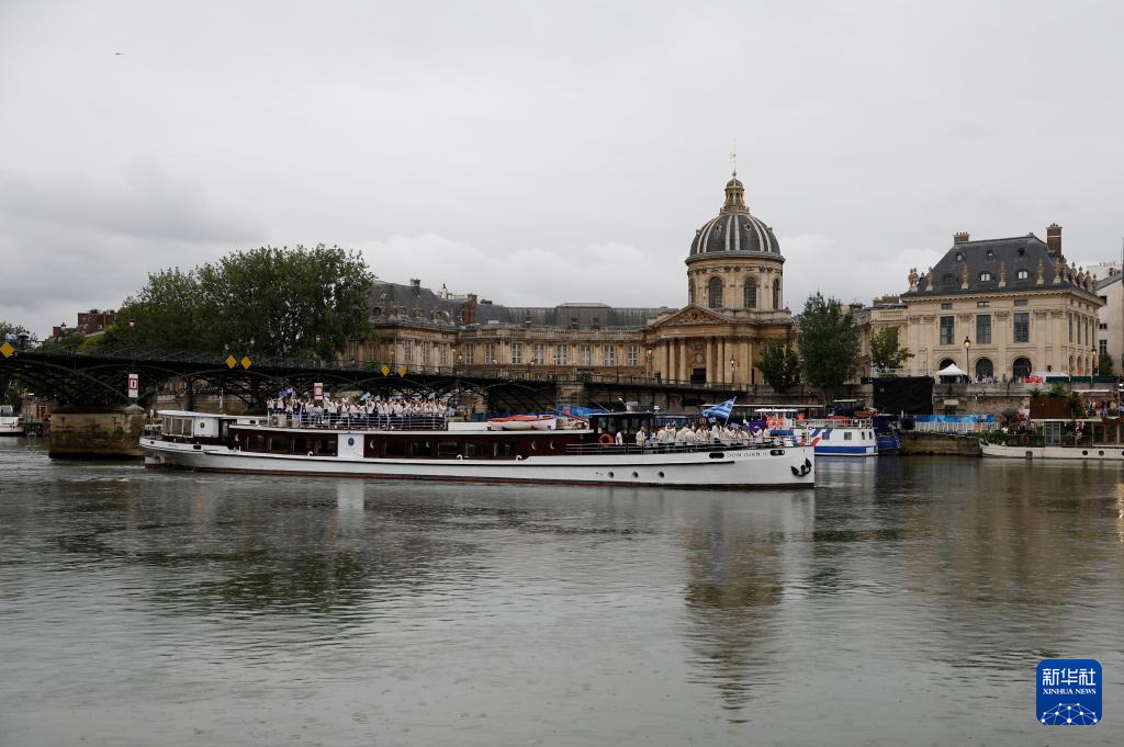 7月26日,希臘體育代表團(tuán)進(jìn)入特羅卡德羅廣場(chǎng)。新華社記者 沈伯韓 攝
