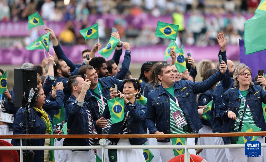 7月26日,巴西體育代表團(tuán)成員在開幕式上。新華社記者 陳斌 攝