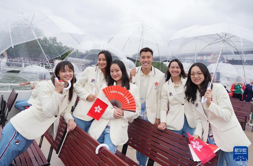 7月26日,中國(guó)香港體育代表團(tuán)在開幕式上。新華社記者 呂小煒 攝