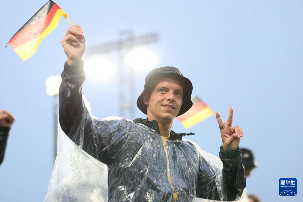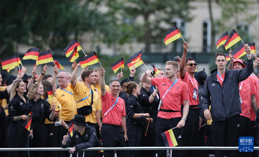7月26日,德國(guó)體育代表團(tuán)成員在開幕式上慶祝。新華社記者 李明 攝pagebreak