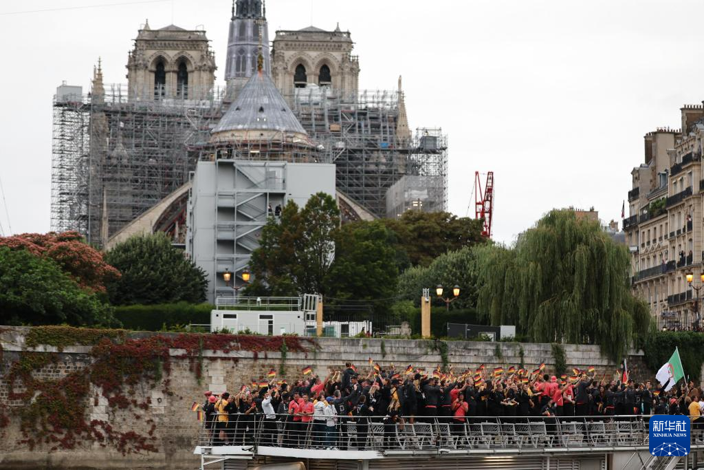 7月26日,各體育代表團(tuán)在開幕式上,右側(cè)是巴黎圣母院。新華社發(fā)(POOL照片/丹·馬蘭)pagebreak