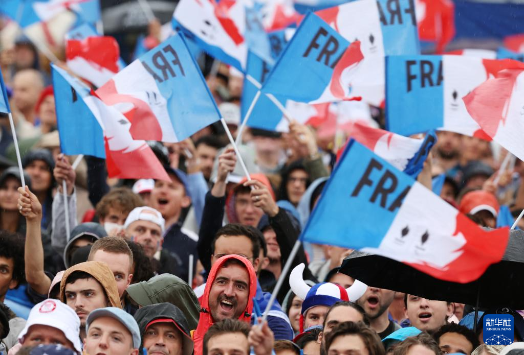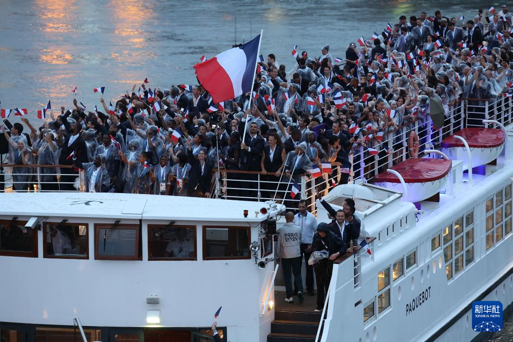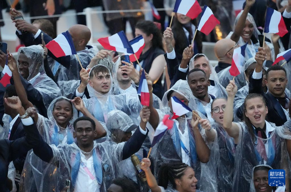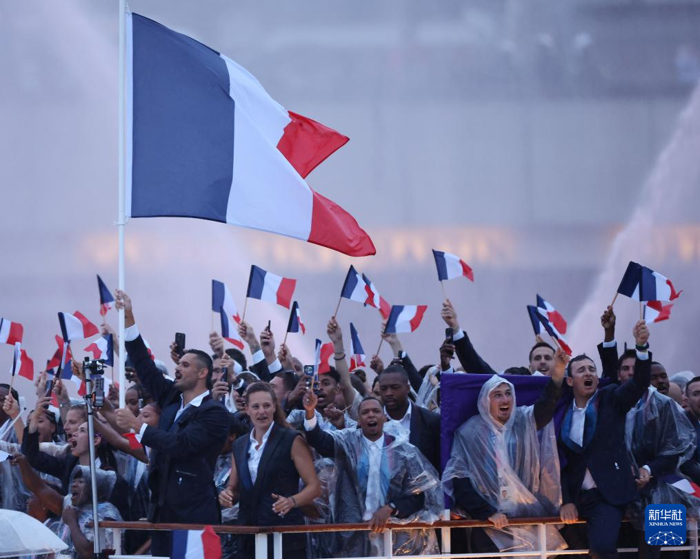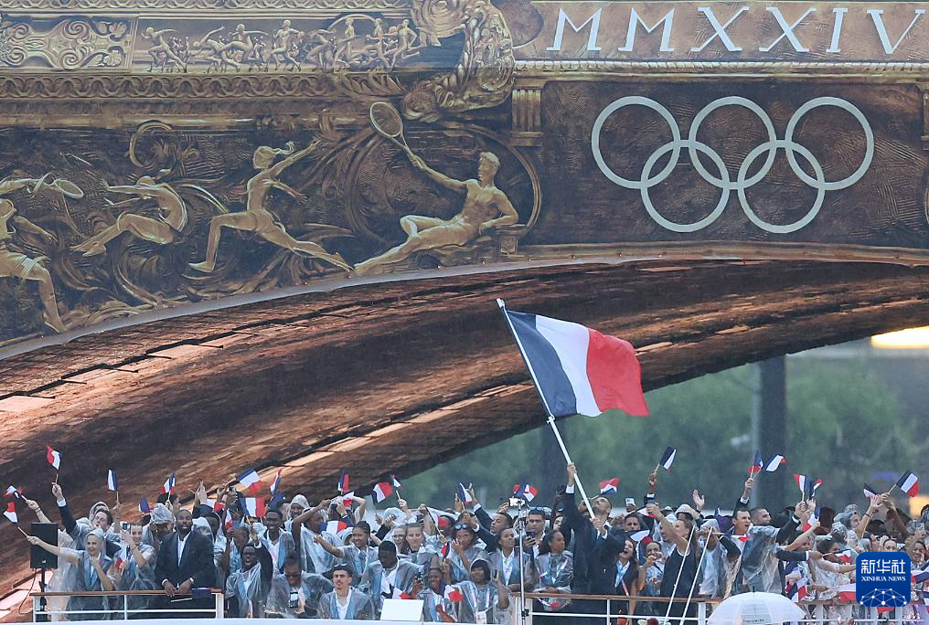 7月26日,法國(guó)體育代表團(tuán)在開幕式上。新華社記者 趙丁喆 攝
