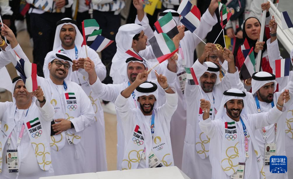 7月26日,安提瓜和巴布達(dá)、沙特阿拉伯、阿根廷、亞美尼亞、阿魯巴體育代表團(tuán)在開幕式上。新華社記者 張玉薇 攝