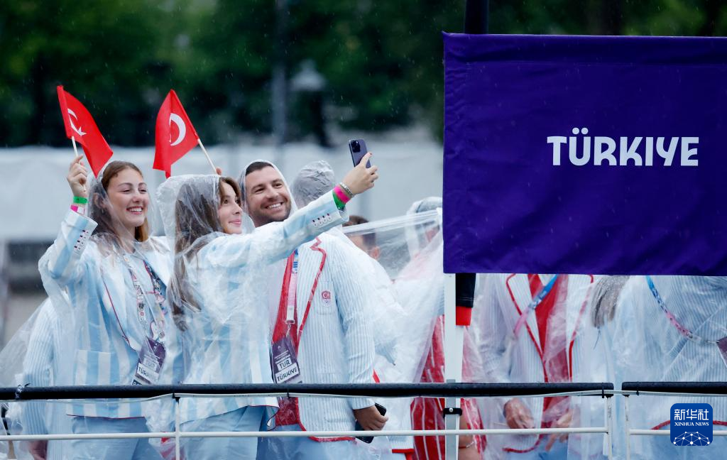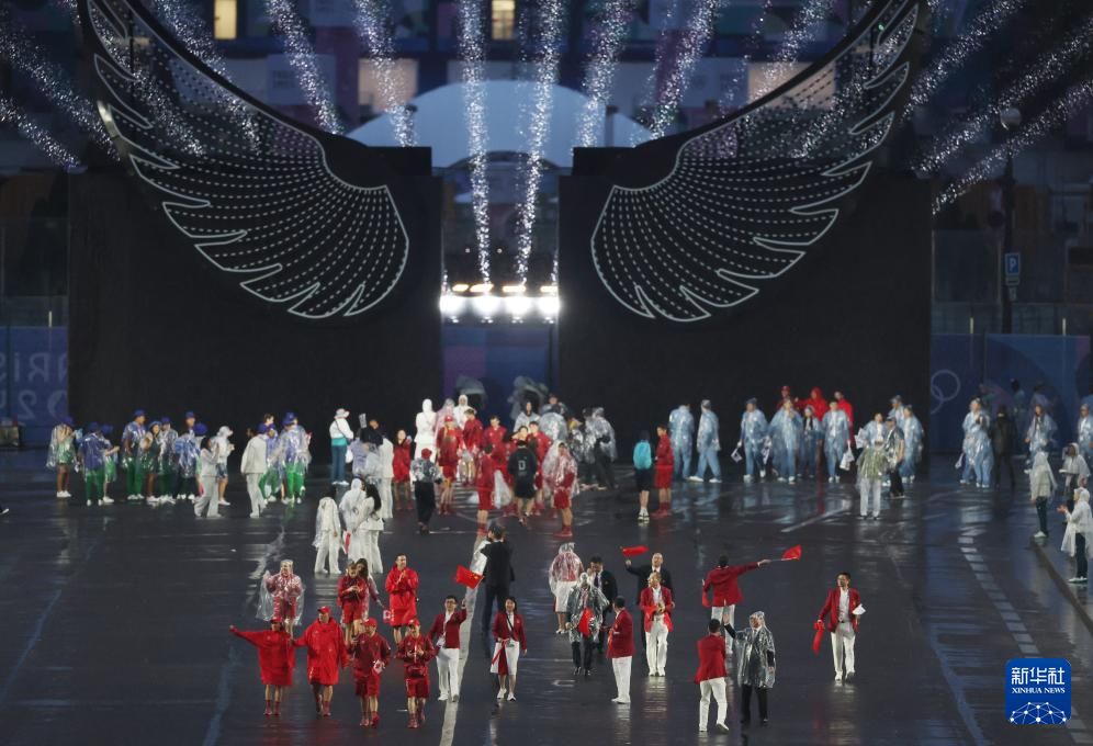 7月26日,各體育代表團(tuán)在開幕式上。新華社發(fā)(POOL照片/里卡多·毛佐蘭)